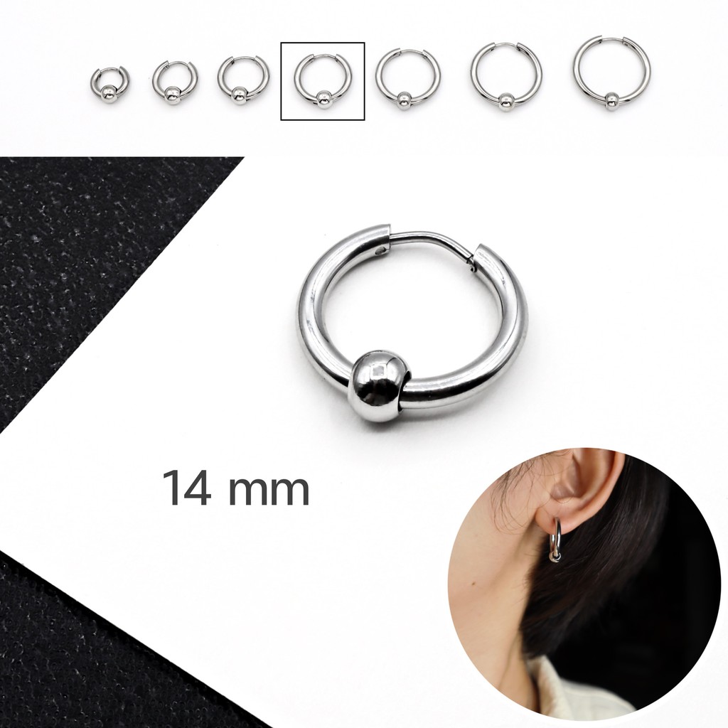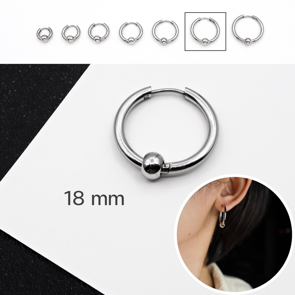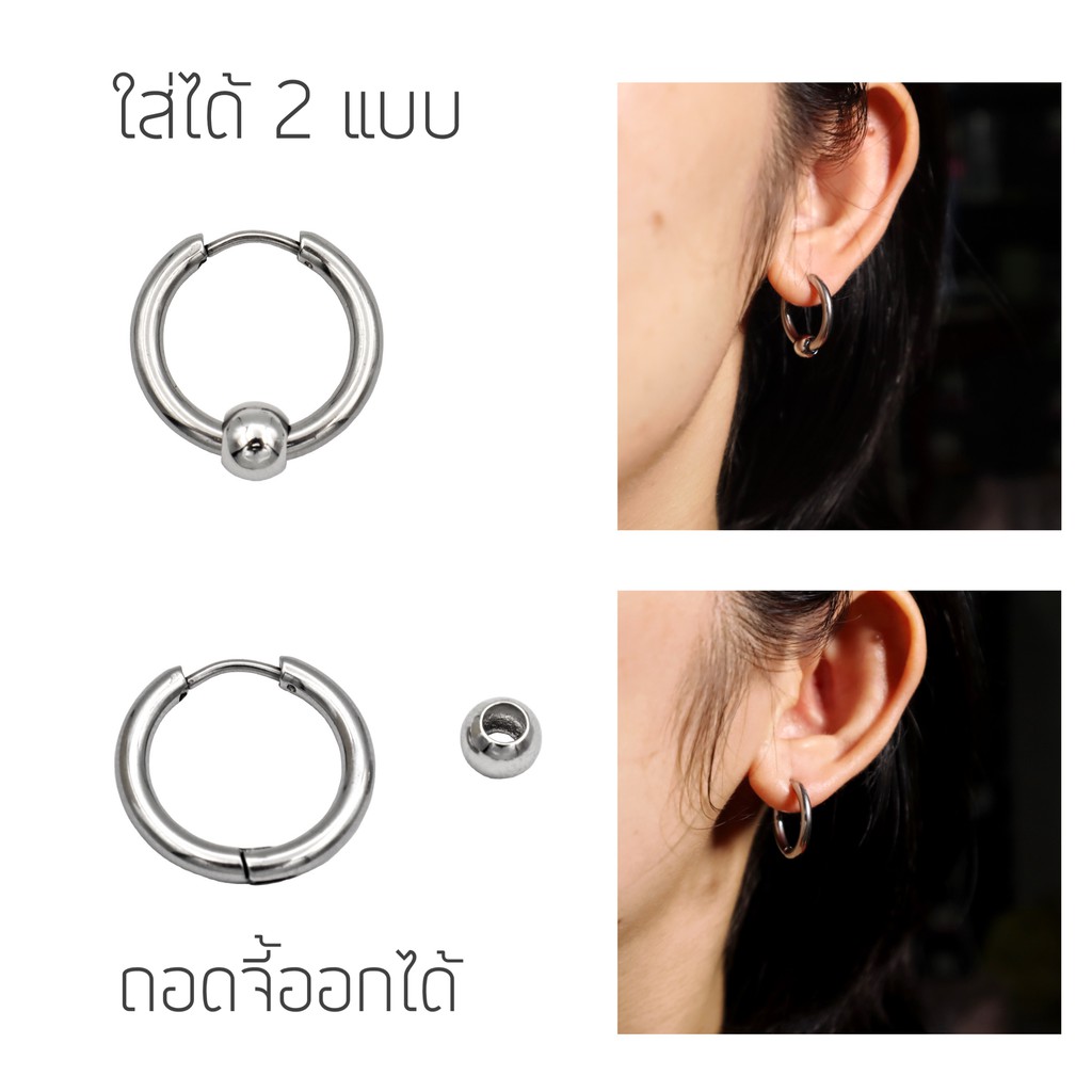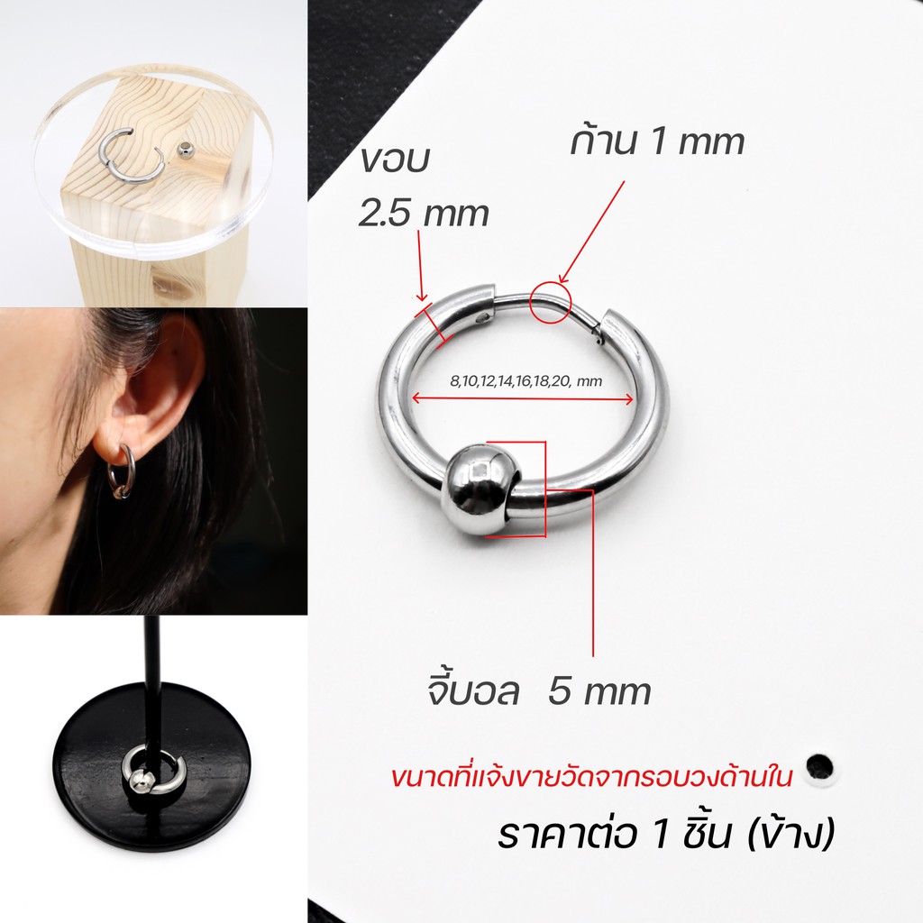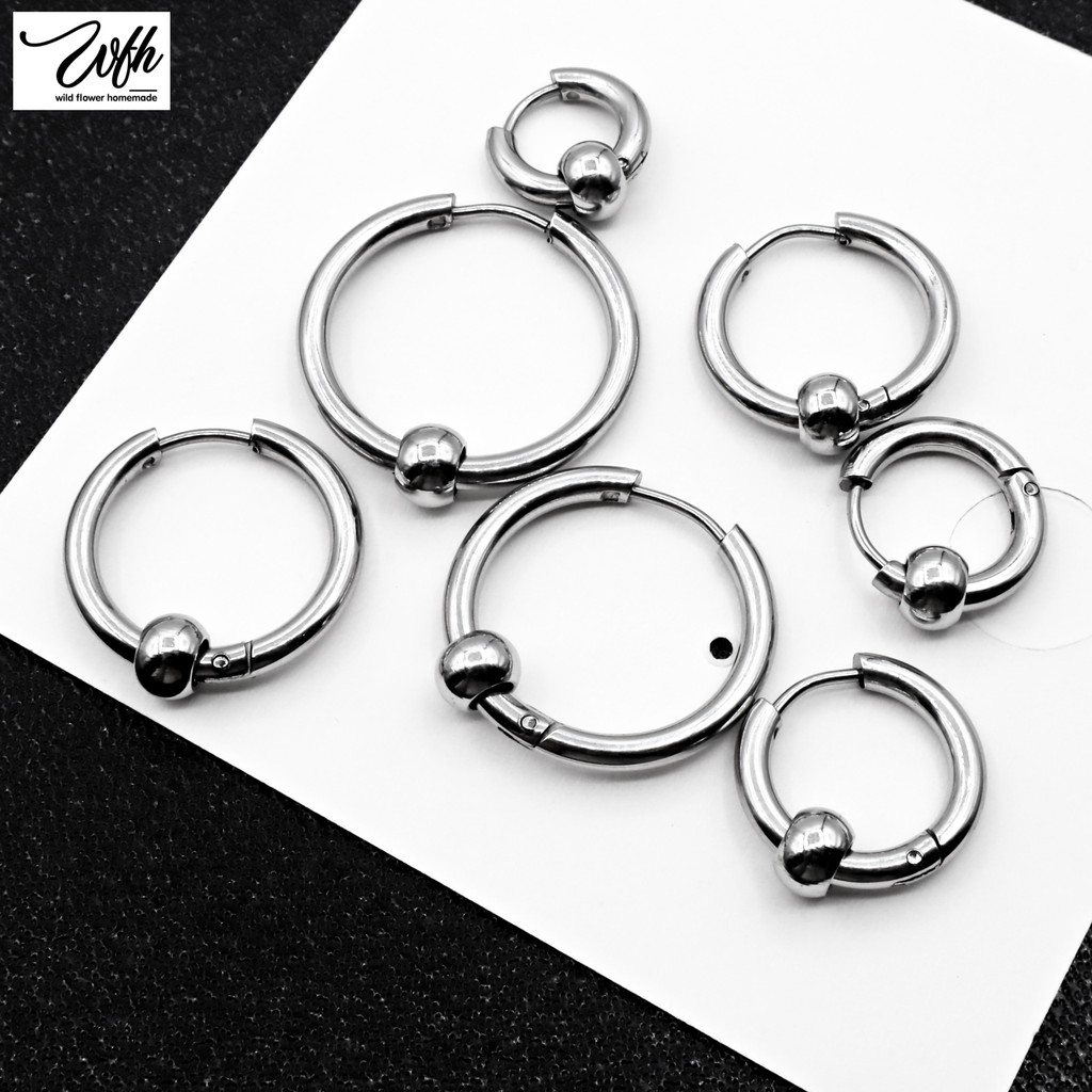 WFH ต่างหูห่วงแบบเจาะ จิวสแตนเลส จี้บอลกลม สีเงิน