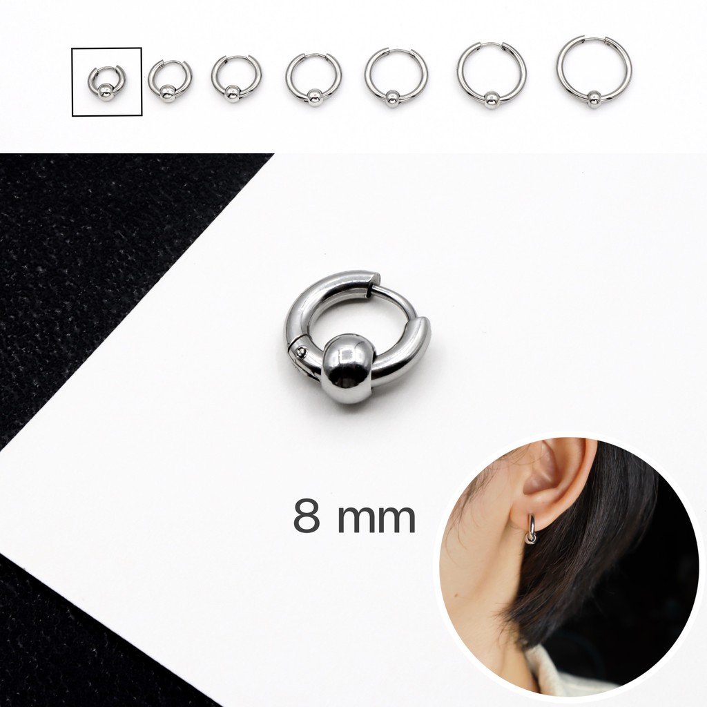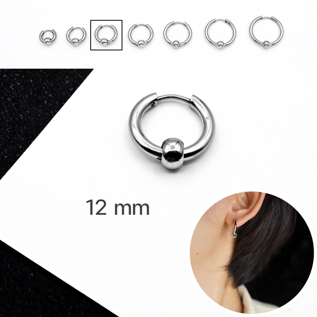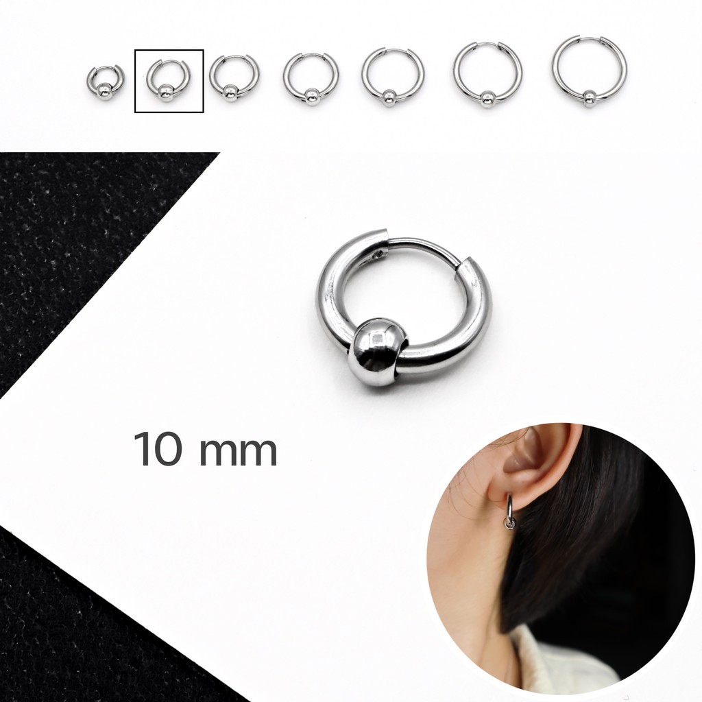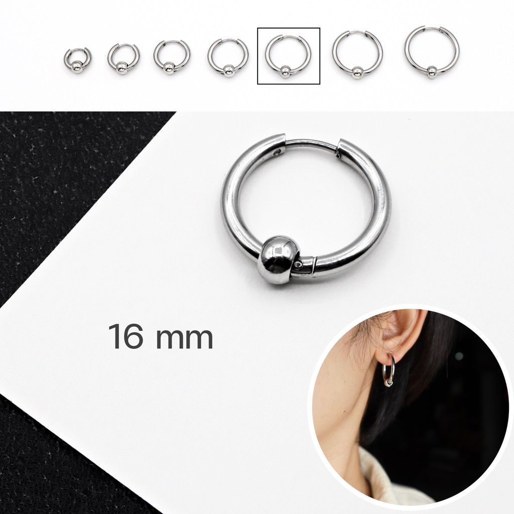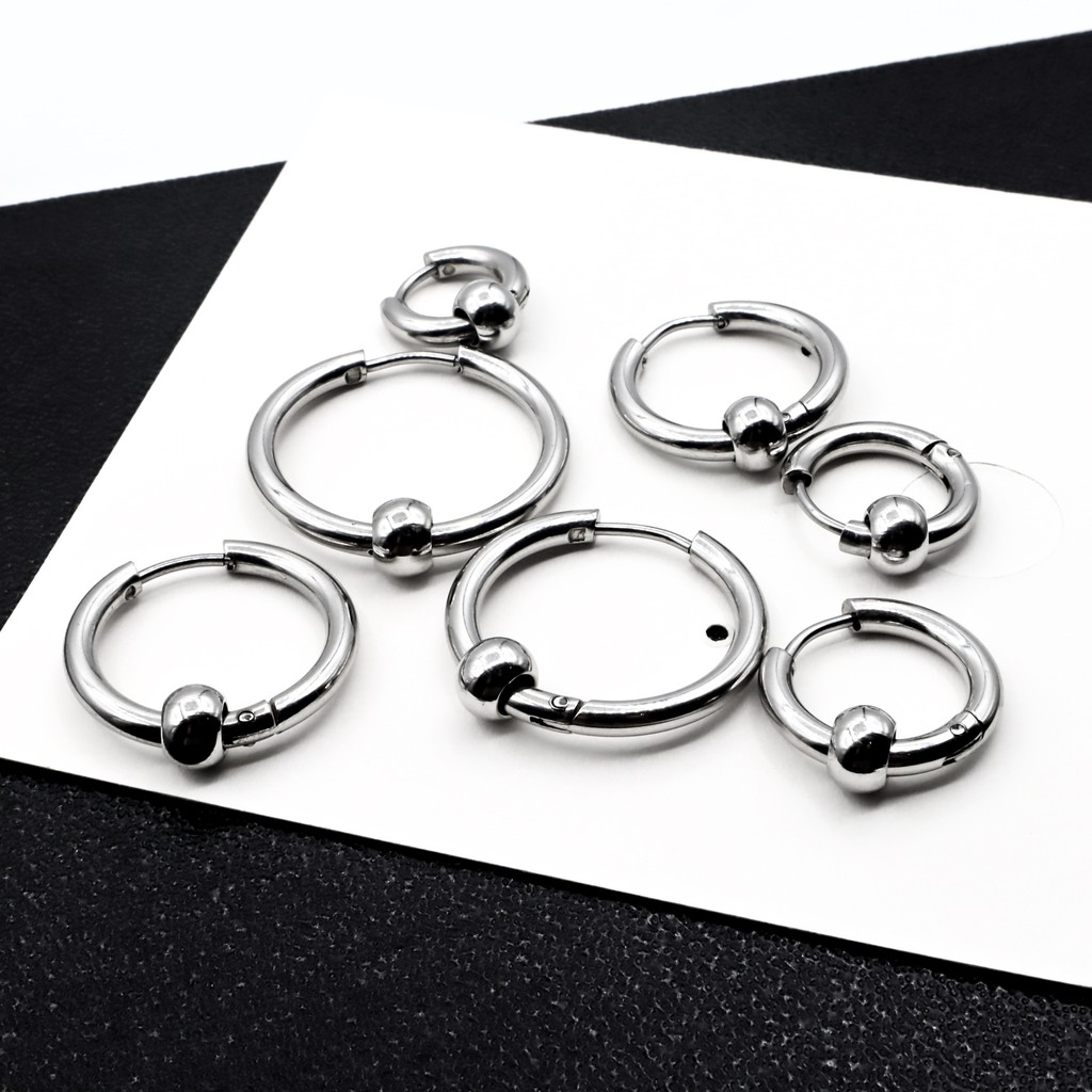 WFH ต่างหูห่วงแบบเจาะ จิวสแตนเลส จี้บอลกลม สีเงิน