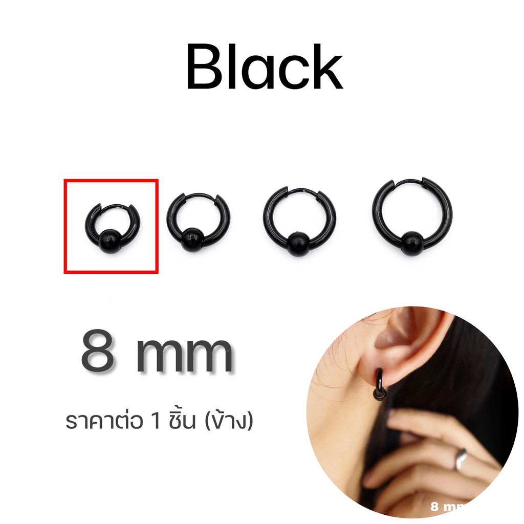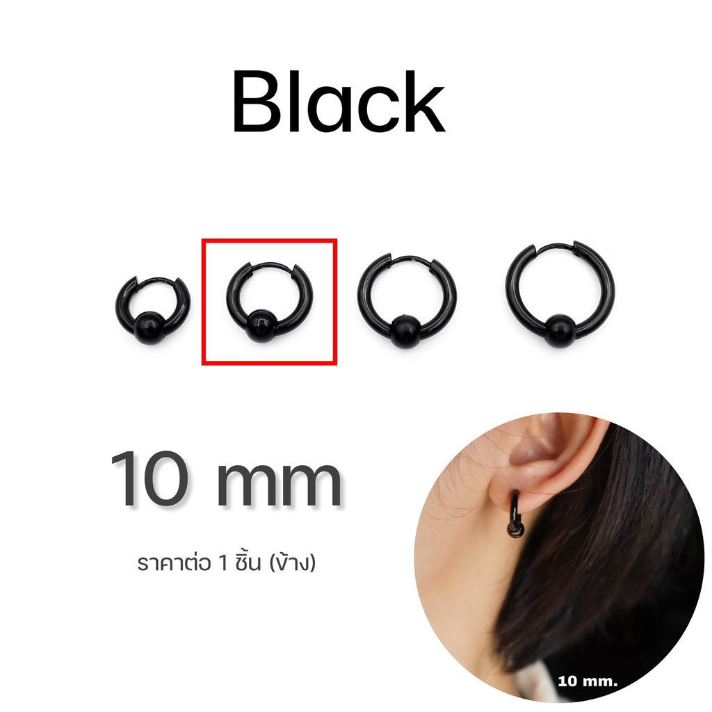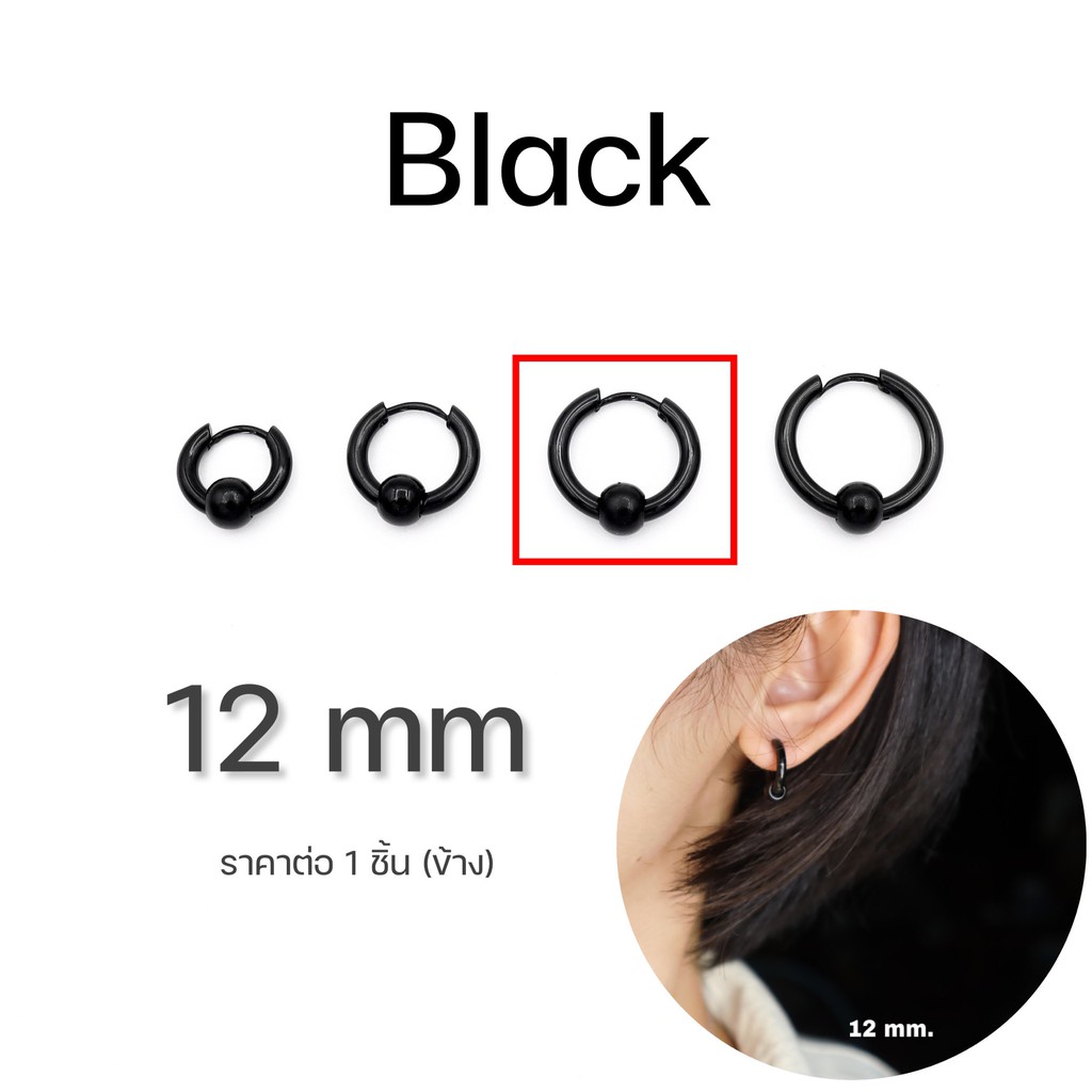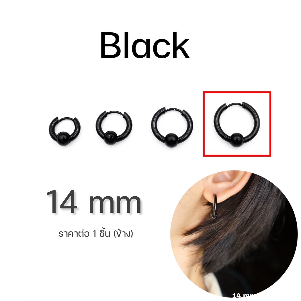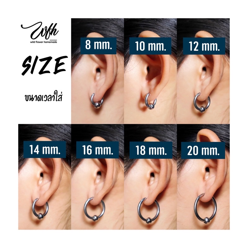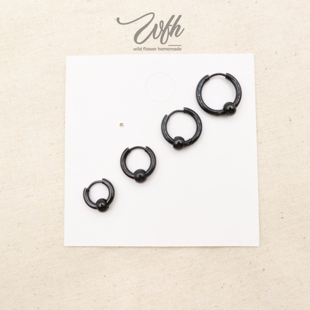 WFH ต่างหูห่วงแบบเจาะ จิวสแตนเลส จี้บอลกลม สีเงิน