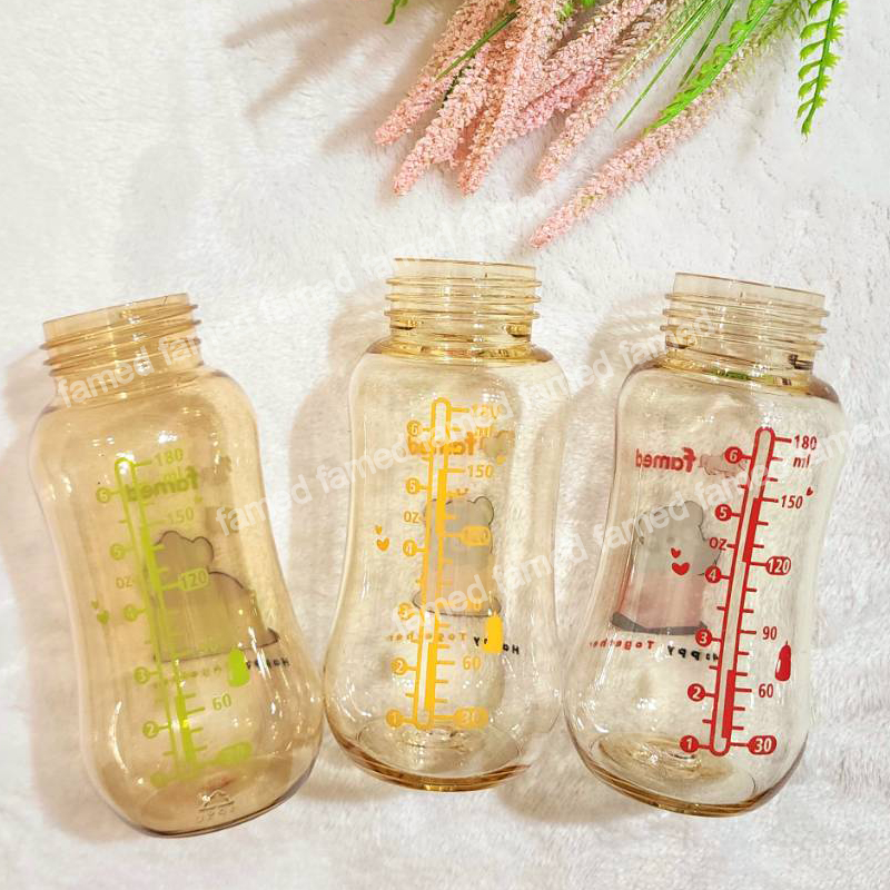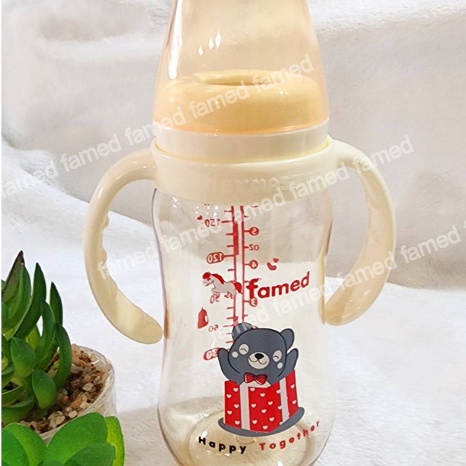famed ขวดนม คอแคบสีชา PPSU 6ออนซ์ 180มล ทนร้อน ทนทาน