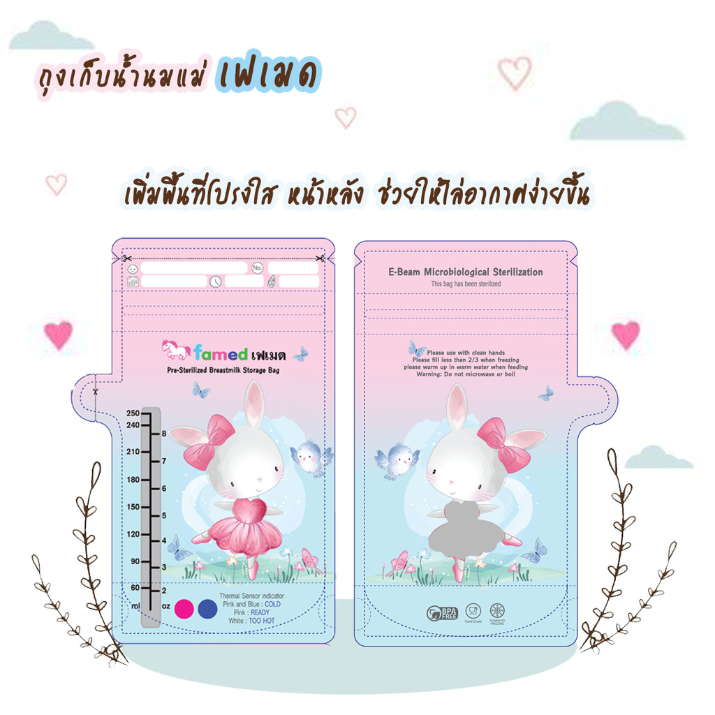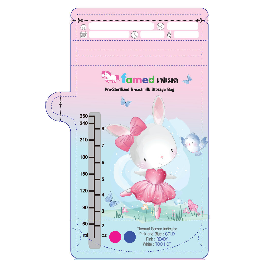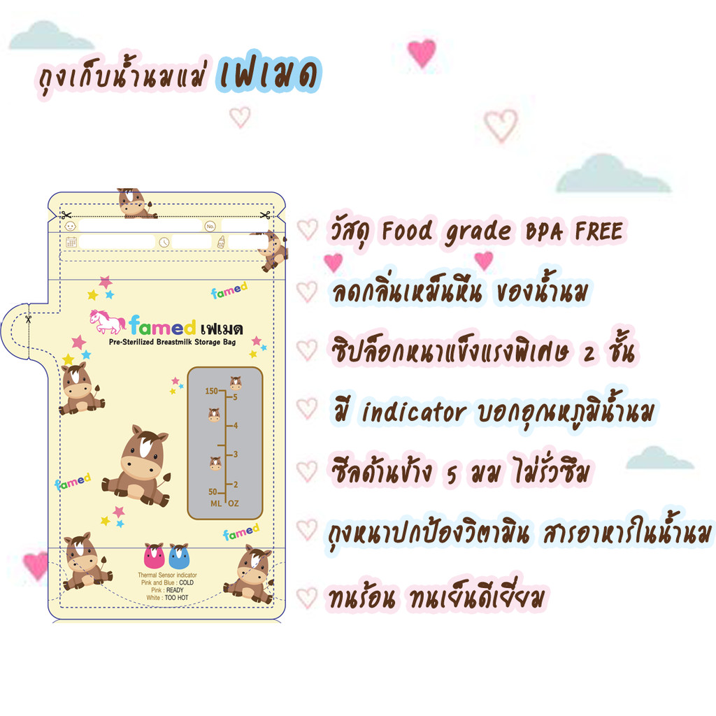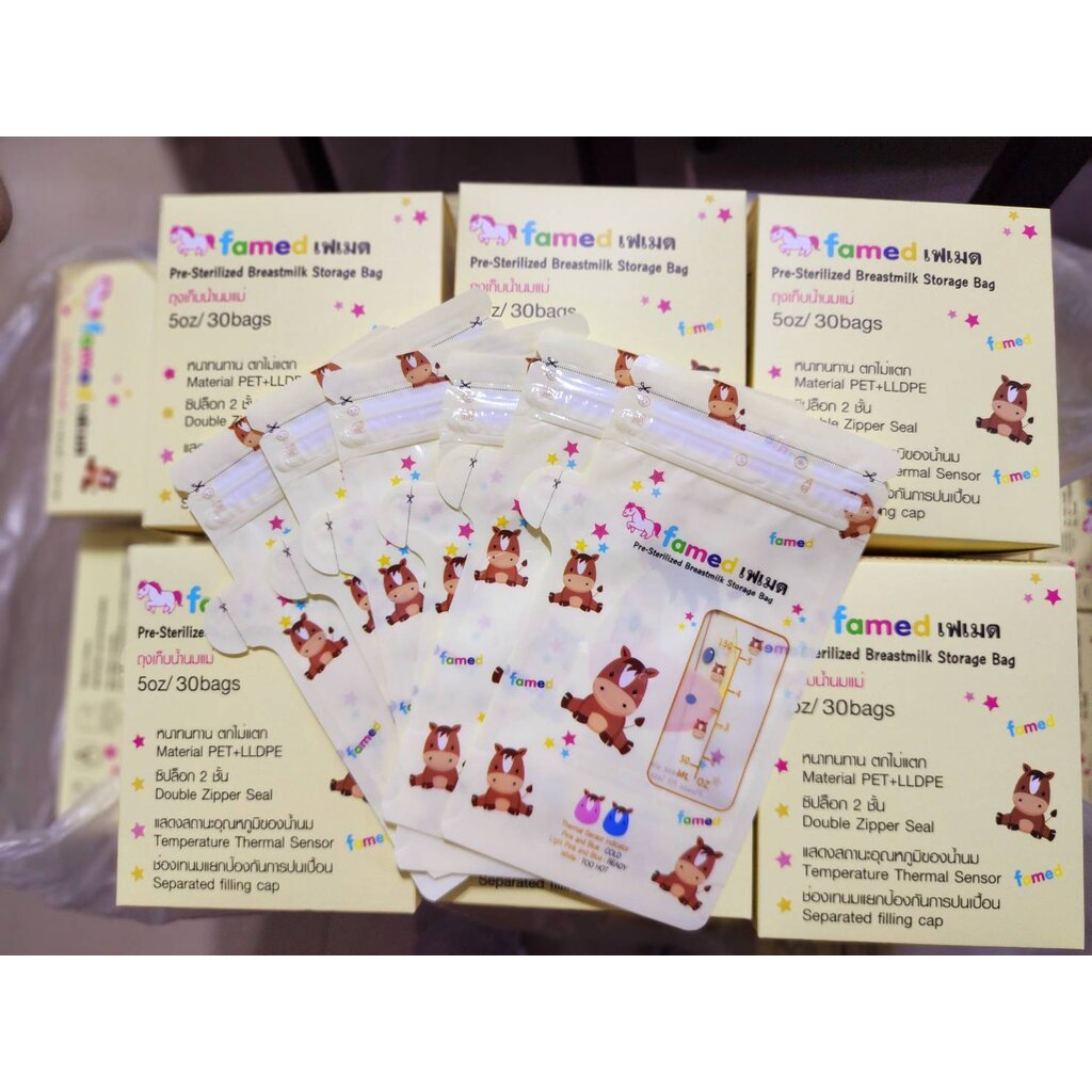 ถุงเก็บน้ำนมแม่ famed เฟเมด ขน าด 5ออนซ์ และ 8ออนซ์ แบบแยกช่องเทน้ำนม 30 ใบ ต่อกล่อง