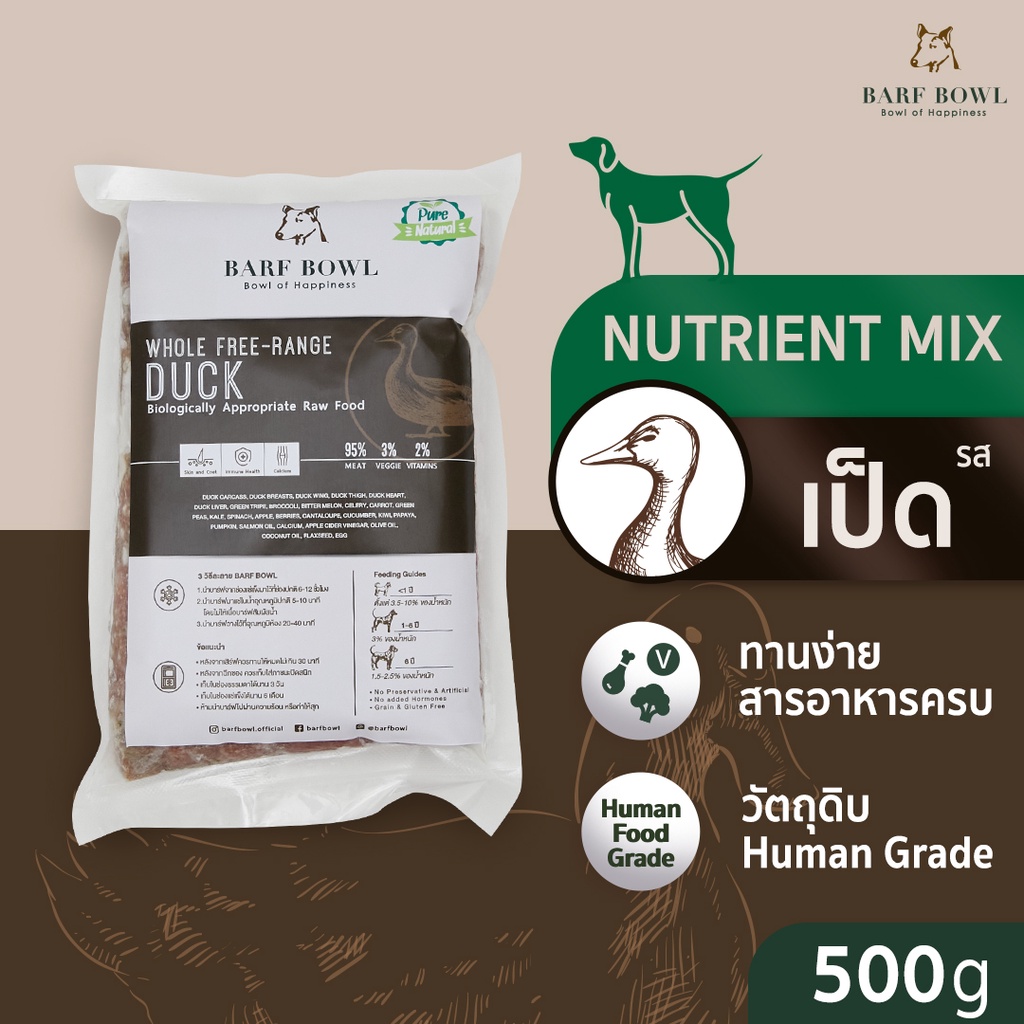 บาร์ฟสุนัข - BARF สูตรเป็ดผสมเครื่องใน l 500g - (Nutrient mix) FREE-RANGE DUCK