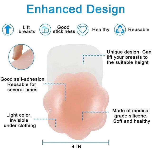 แผ่นปิดหน้าอก ซิลิโคน กลีบดอกไม้ แฟชั่น มีเทปในตัว เหนียว มองไม่เห็น สามารถใช้ซ้ำได้ สำหรับติดภายใต้ชุดชั้นใน