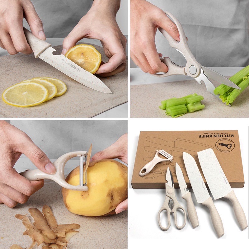 (RJF7LSZC ลด20%) พร้อมส่ง l มีด ชุดมีด 5 ชิ้น มีดทำครัว มีดมีปลอก มีดสับกระดูก มีดแล่เนื้อ มีดปลอกผลไม้ กรรไกร ปอกผลไม้