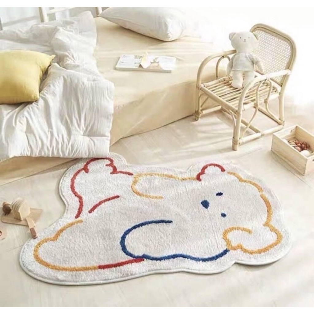 (โค้ด Q9989U ลด20%) สินค้าเข้าใหม่ l พรม พรมเช็ดเท้า พรมกันลื่น พรมพิมพ์ลายสัตว์ สีขาวมินิมอล สําหรับห้องนอนห้องนั่งเล่น