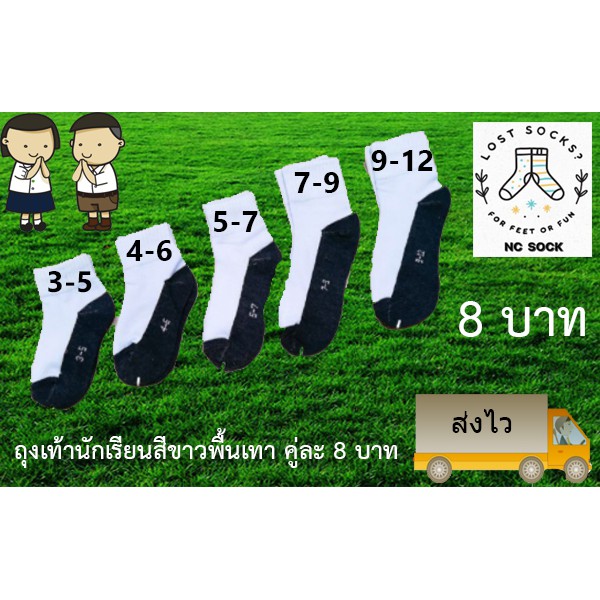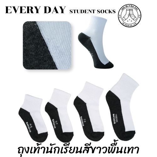 ถุงเท้านักเรียน ถุงเท้านักเรียนขาวพื้นเทา ( 1 คู่ )