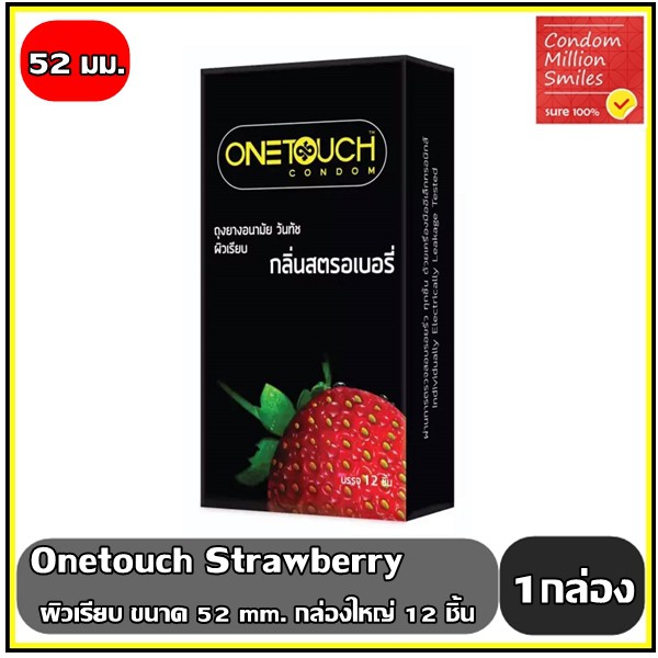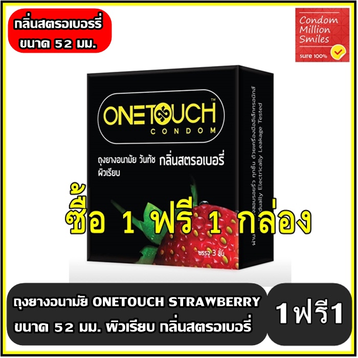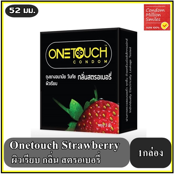 Onetouch Strawberry Comdom ++ซื้อ 1ฟรี1กล่อง++ ถุงยางอนามัยวันทัช สตรอเบอรี่ ผิวเรียบ ขนาด 52 มม. 1กล่องเล็กบรรจุ 3 ชิ้น