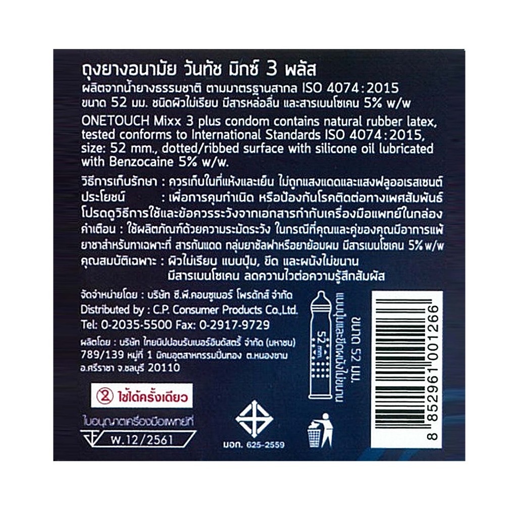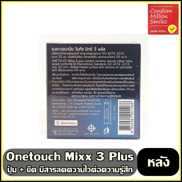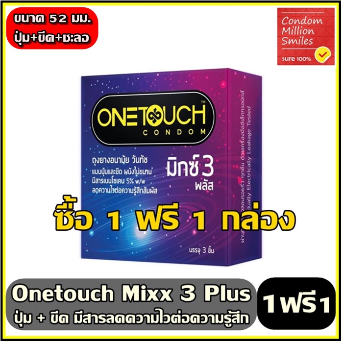 Onetouch mixx 3 Plus Condom ++ซื้อ 1 ฟรี 1 กล่อง++ ถุงยางอนามัยวันทัช มิกซ์3 พลัส แบบขีดและปุ่ม ลดความไว ขนาด 52 มม