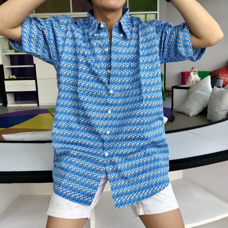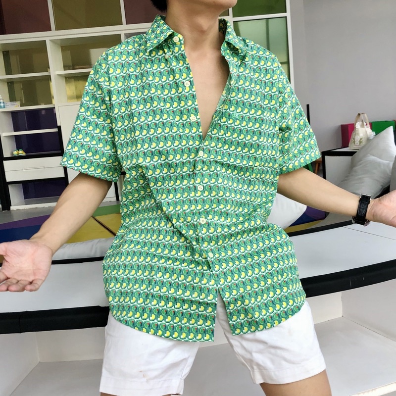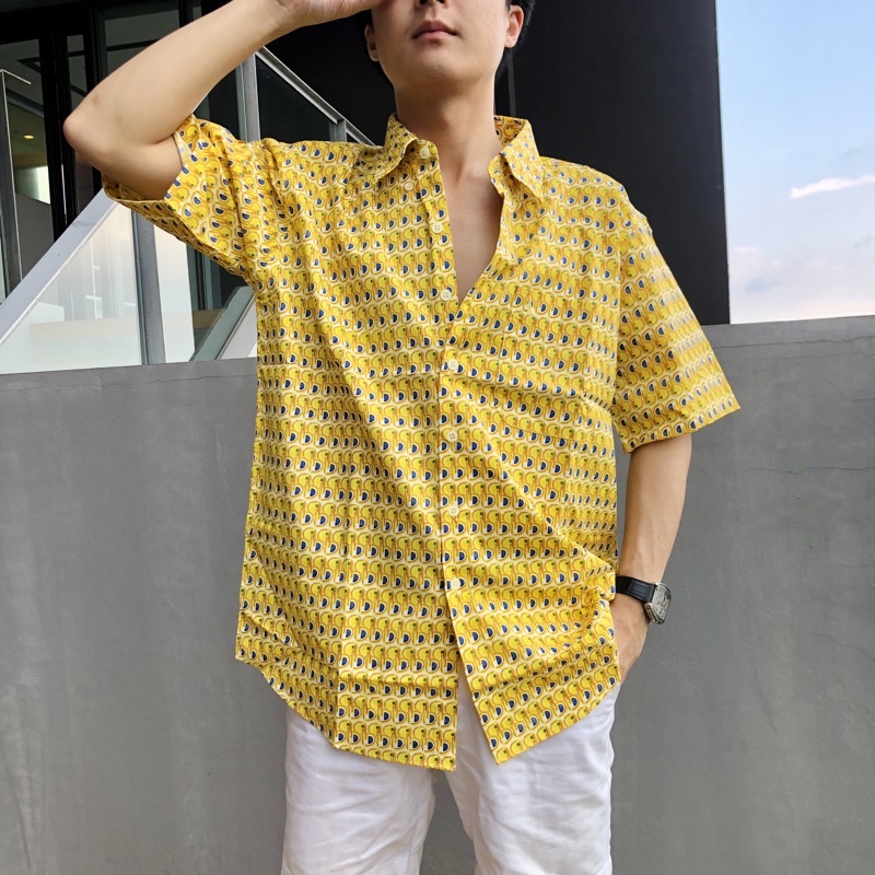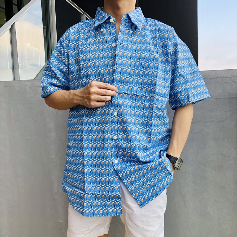 🔥[โค้ดหน้าร้านลดเพิ่ม 25บาท]🔥เสื้อเชิ้ตแขนสั้น Oversized ZURI 2แบบ 5สี ฟ้า เหลือง เขียว/แดง เขียวฟ้า