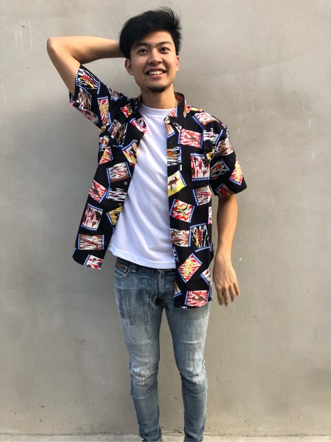 เสื้อเชิ้ตฮาวายแขนสั้น สีสันต้อนรับซัมเมอร์ "ZURI" สีแดง/เขียว/ฟ้า/ดำ/เหลือง