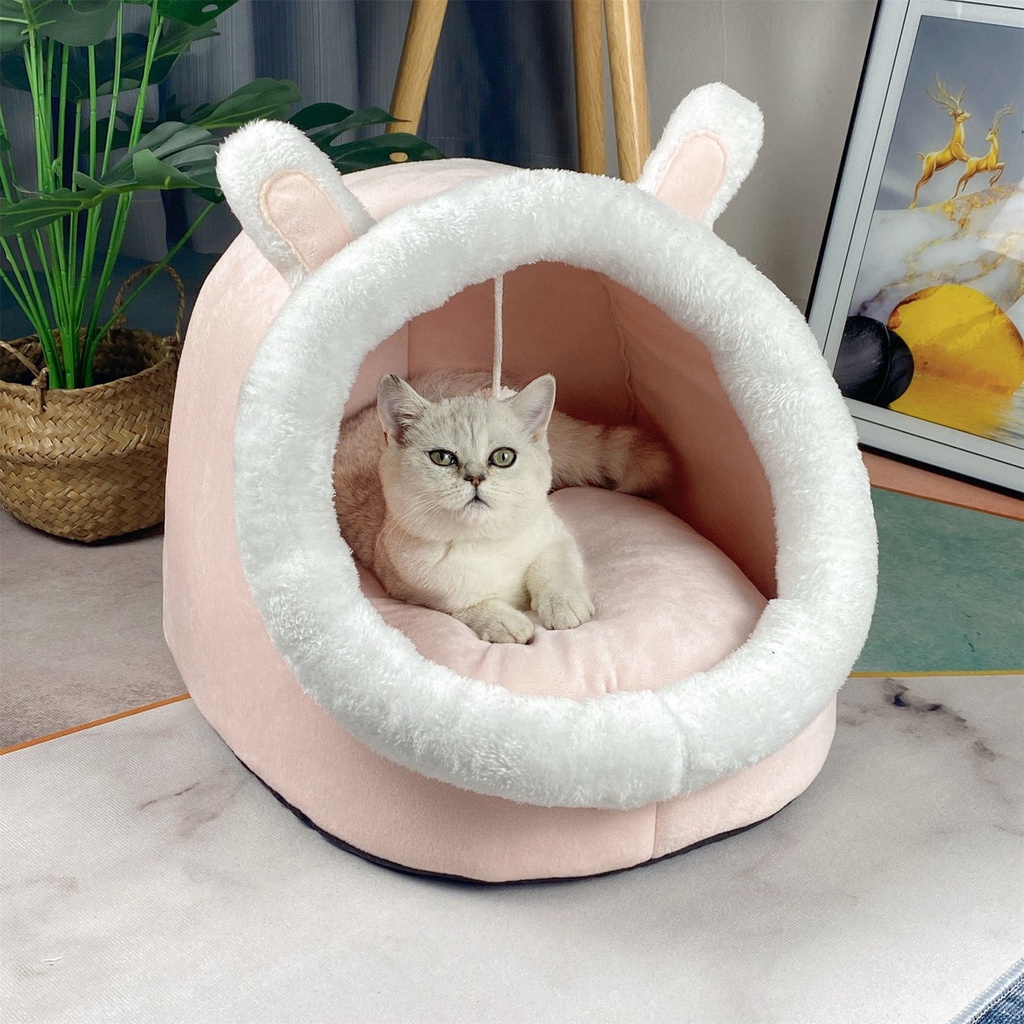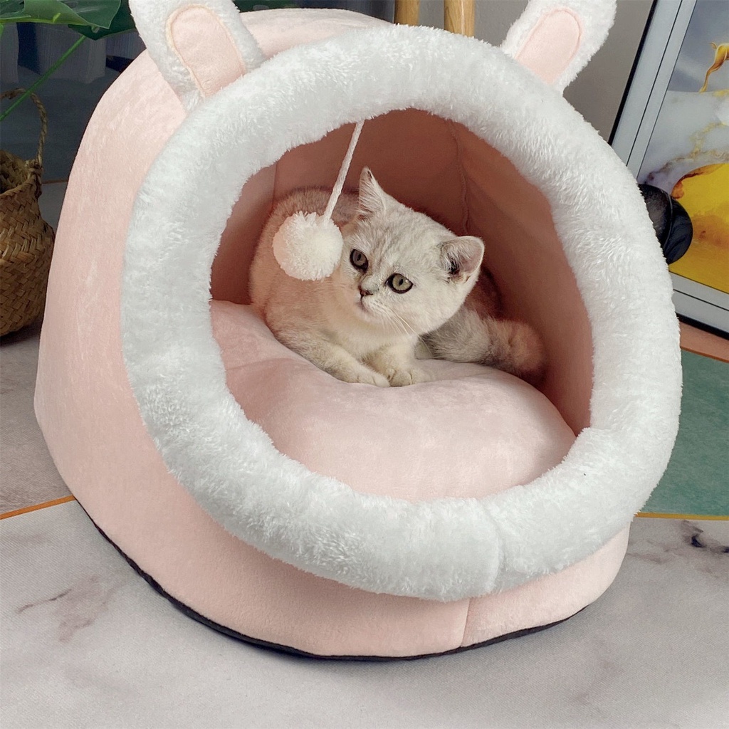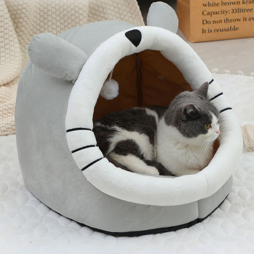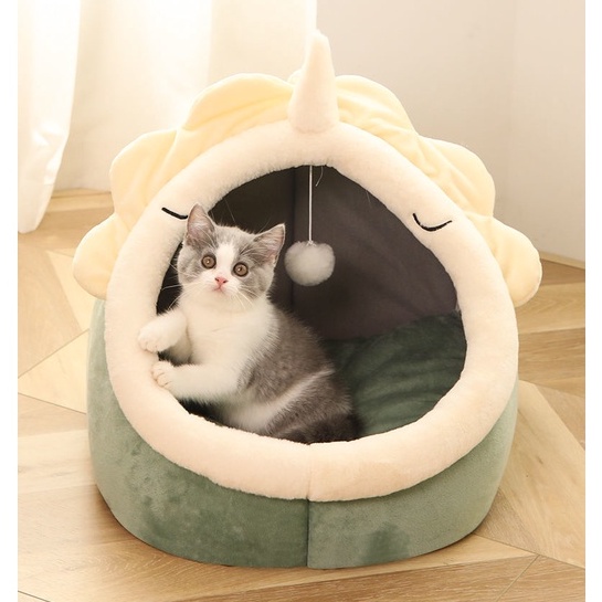 Thai.th บ้านแมว ที่นอนสัตว์เลี้ยง ที่นอนแมว เบาะโดมที่นอนแมวแบบกึ่งปิด นอนสบา ยนุ่มนิ่ม Lazycat