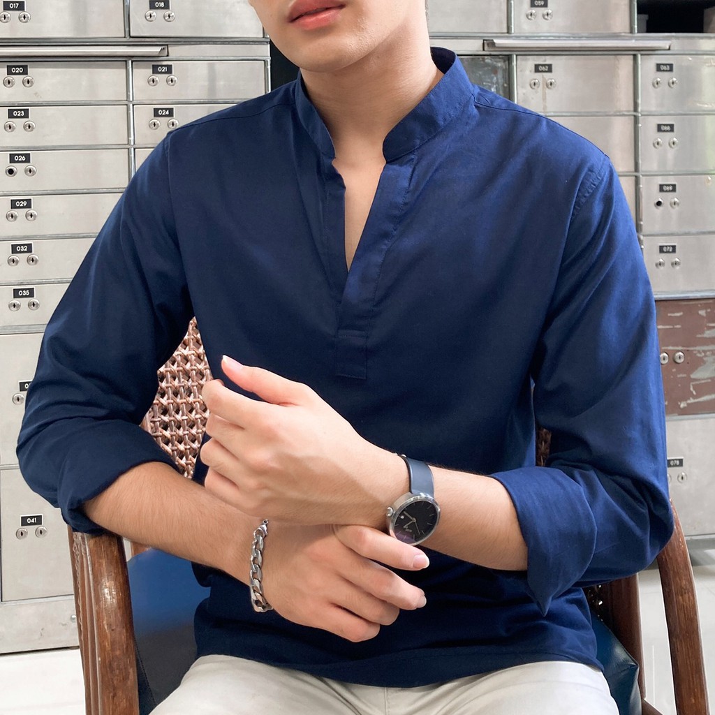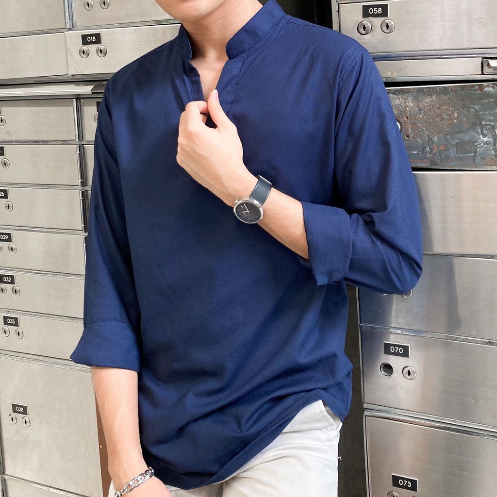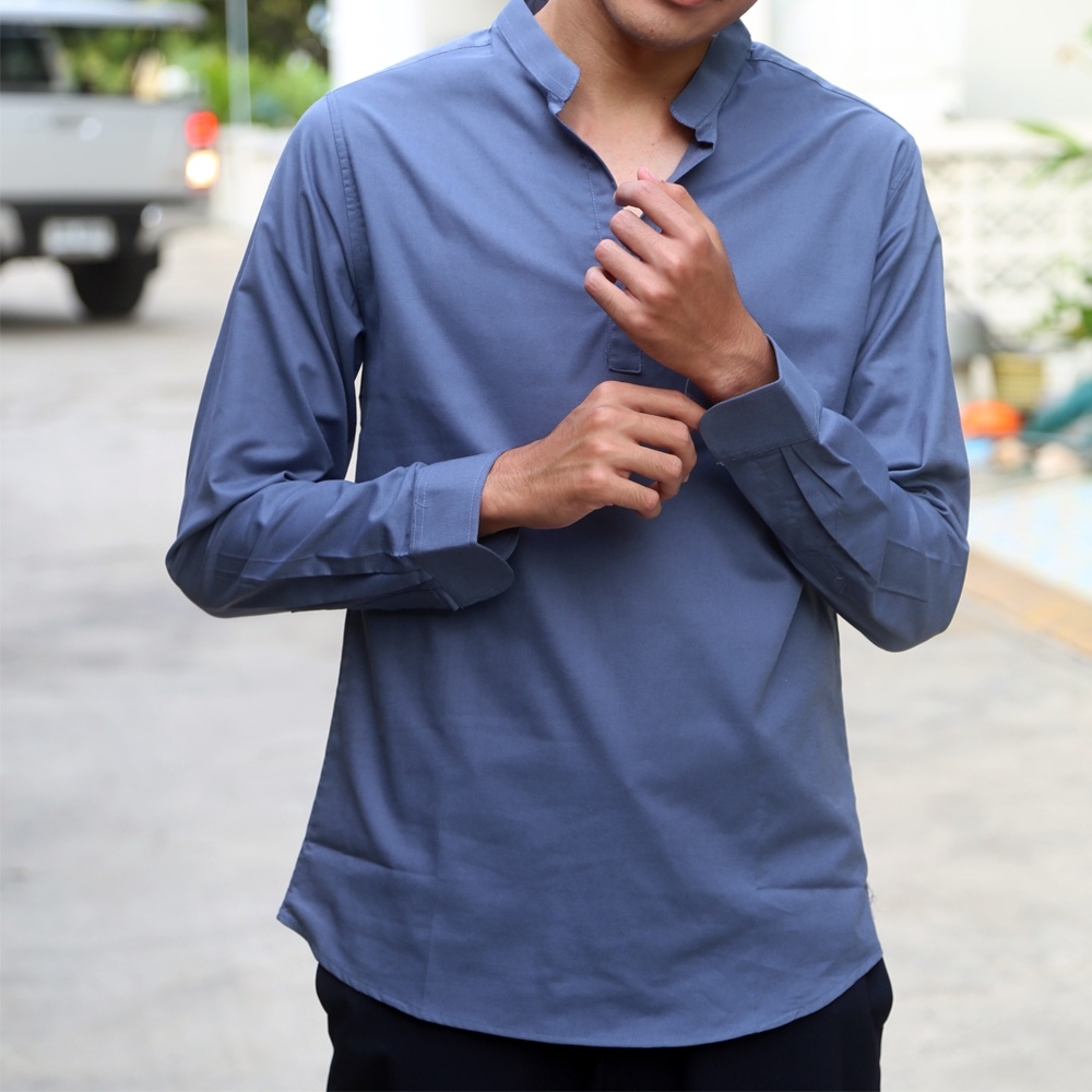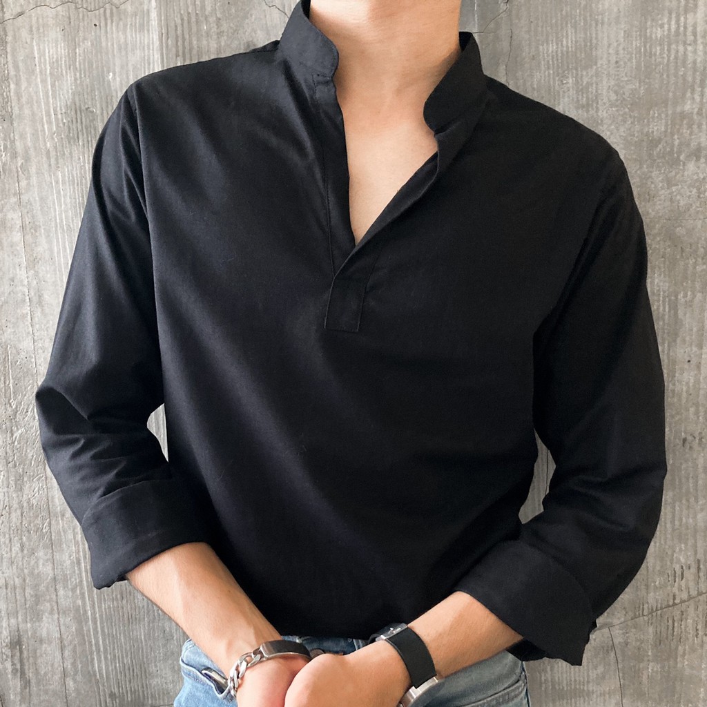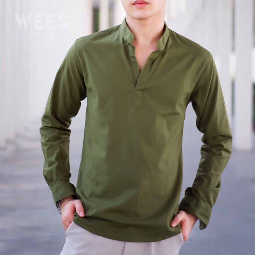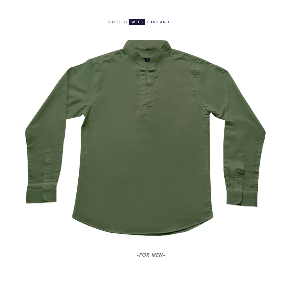 เสื้อเชิ้ตผู้ชาย ไม่มีกระดุม คอจีน กรม ขาว ดำ เขียว WEES THAILAND