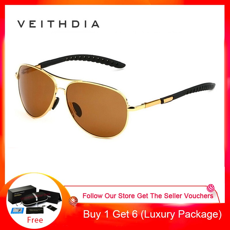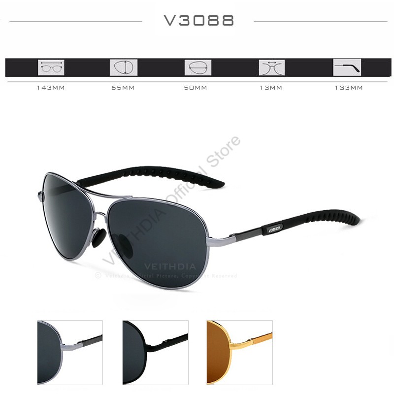 VEITHDIA แว่นกันแดด Aviator สำหรับผู้ชาย แว่นตากันแสง 3088