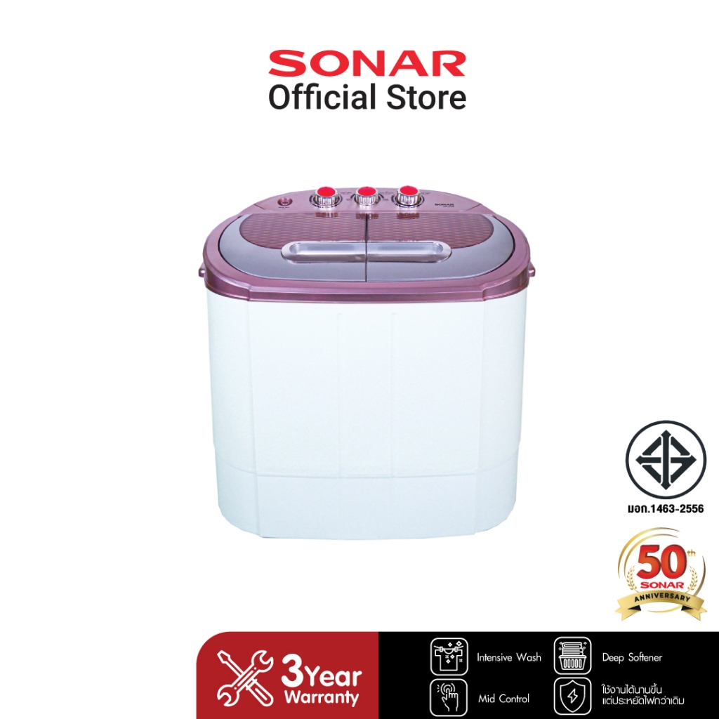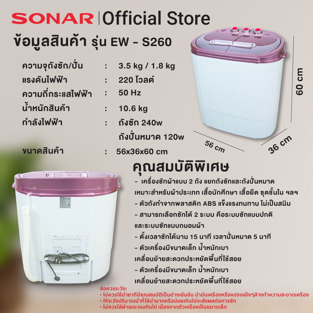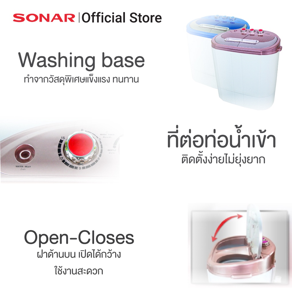 SONAR เครื่องซักผ้ามินิฝาบน 2 ถัง แถมฟรีตะกร้าพับ ซัก 3.5 KG ปั่นหมาด 1.8 KG รุ่น EW-S260