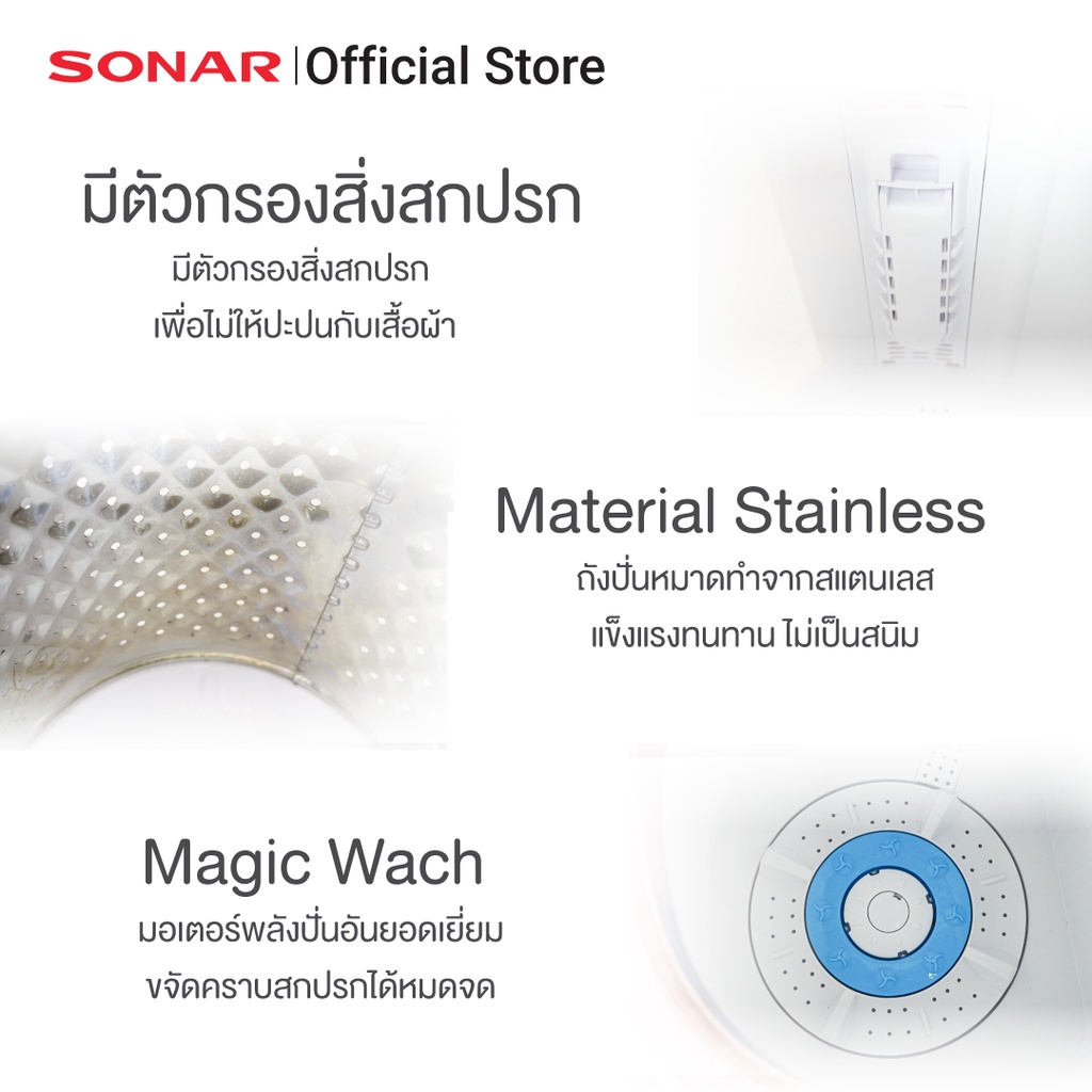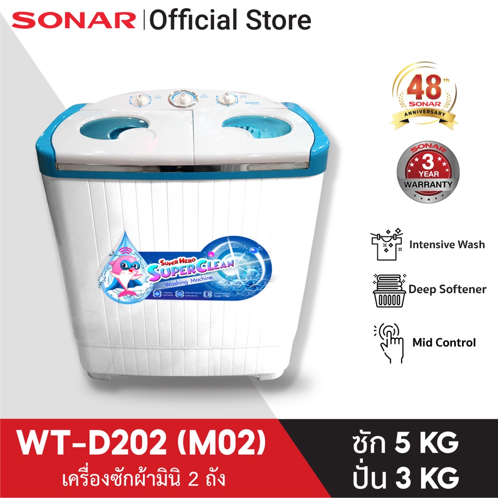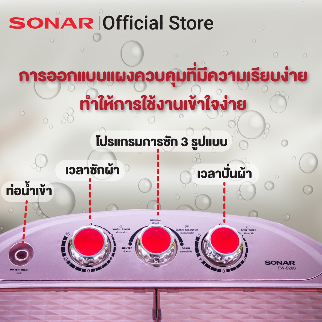 SONAR เครื่องซักผ้ามินิฝาบน 2 ถัง แถมฟรีตะกร้าพับ ซัก 3.5 KG ปั่นหมาด 1.8 KG รุ่น EW-S260