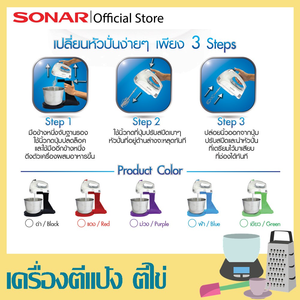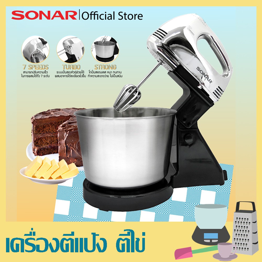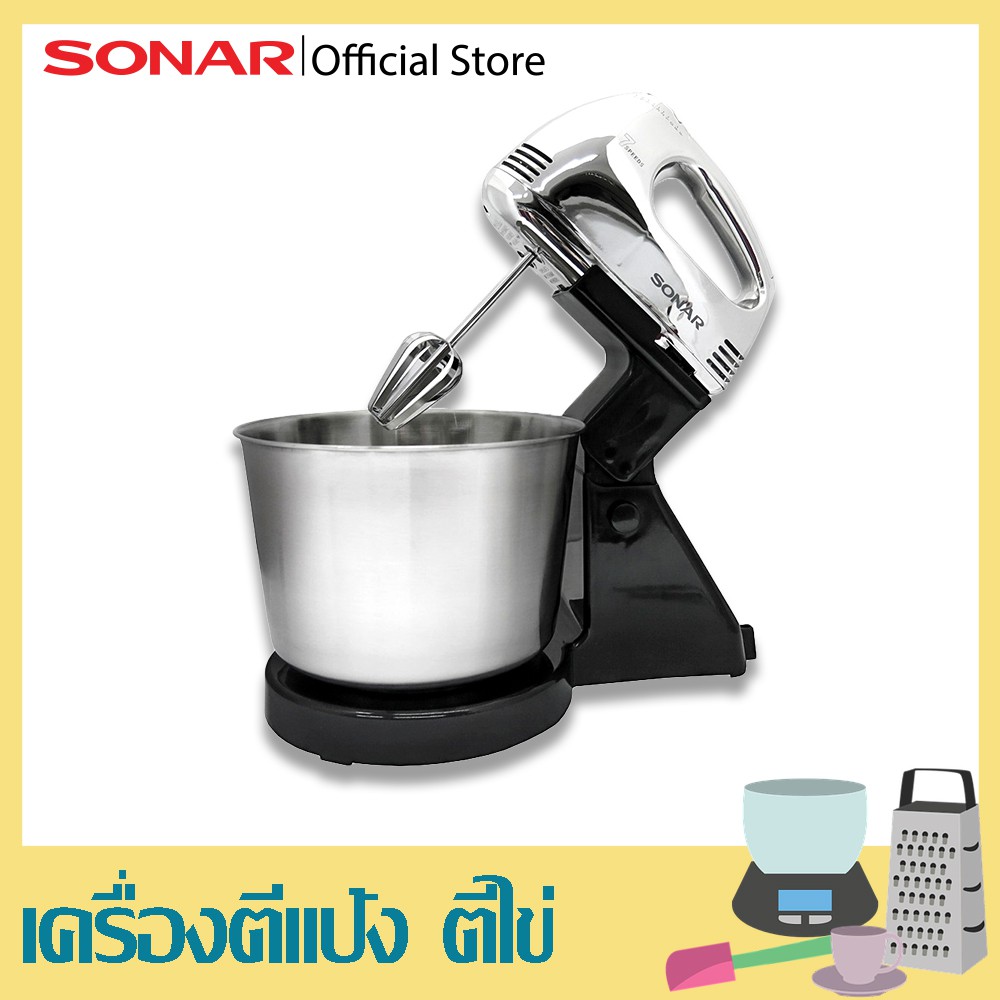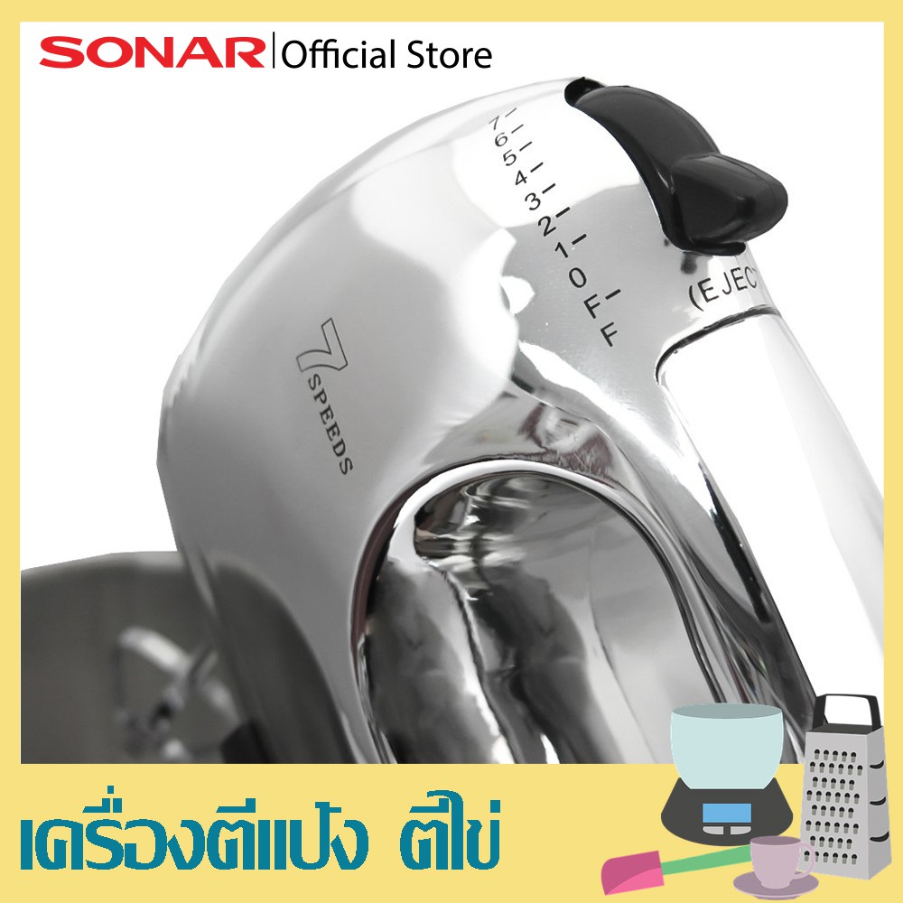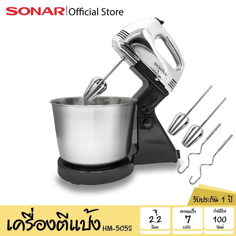 SONAR เครื่องผสมอาหาร พร้อมโถสแตนเลส แถ มฟรีชุดอุปกรณ์ รุ่น HM-505S แบบมีฐาน เครื่องผสมแป้ง