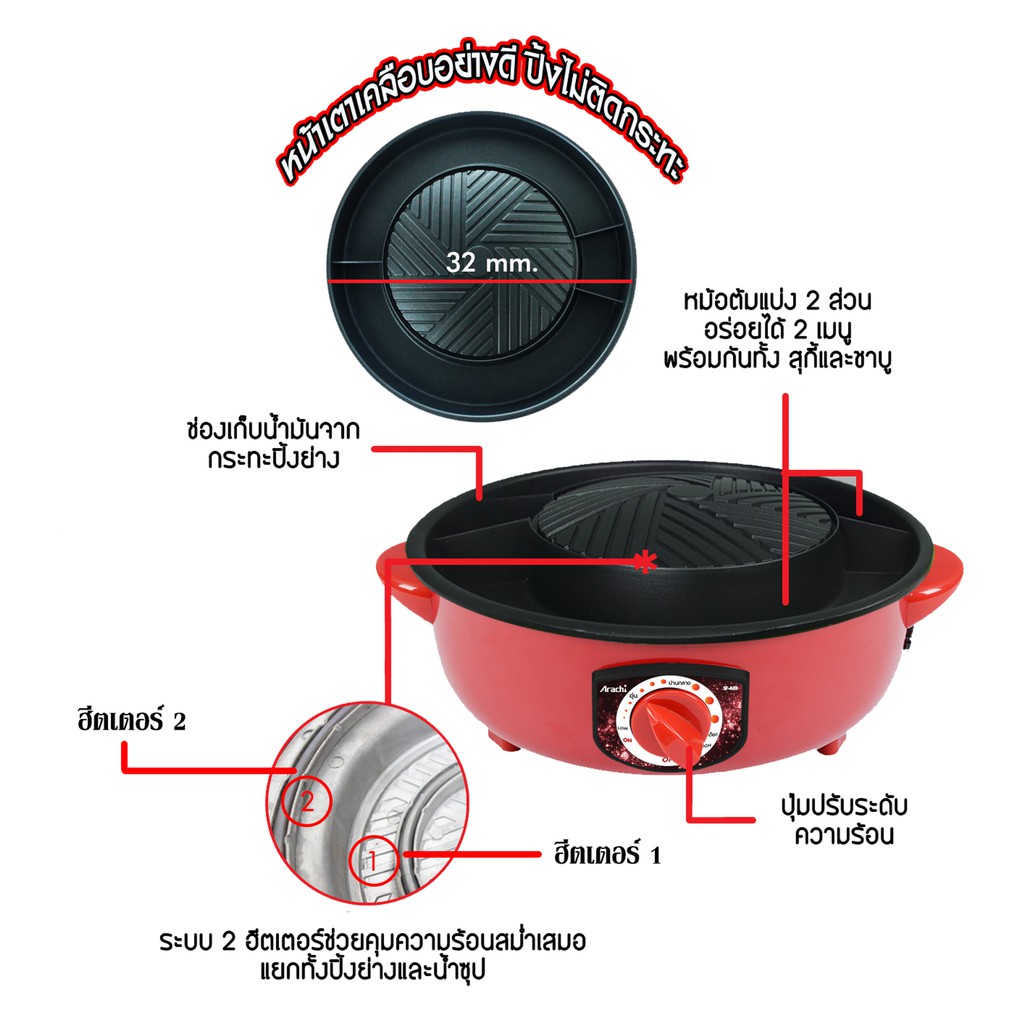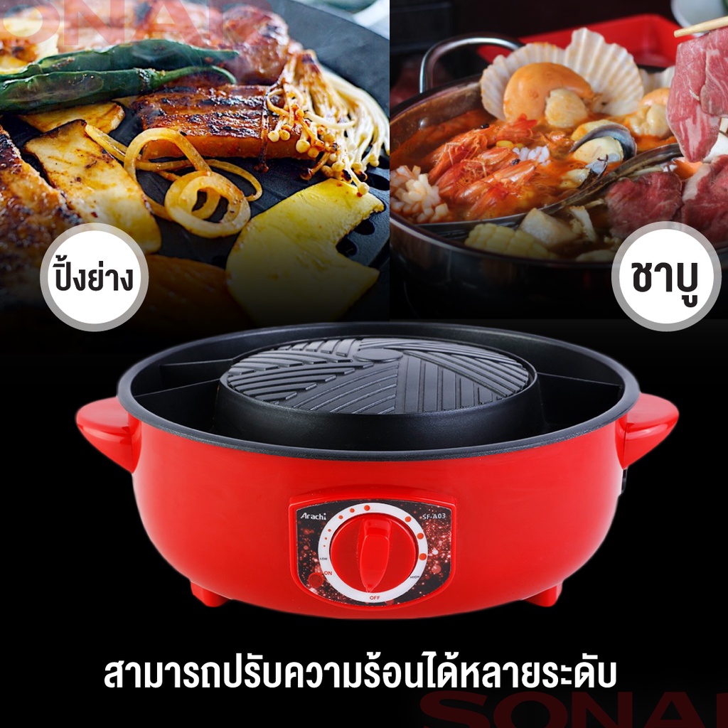 Arachi กระทะไฟฟ้า กระทะปิ้งย่าง เตาปิ้งย่าง หม้อสุกี้ หม้อชาบู เตาปิ้งย่าง กระทะปิ้งย่าง เตาไฟฟ้า กระ ทะเนื้อย่าง รุ่น SF-A03