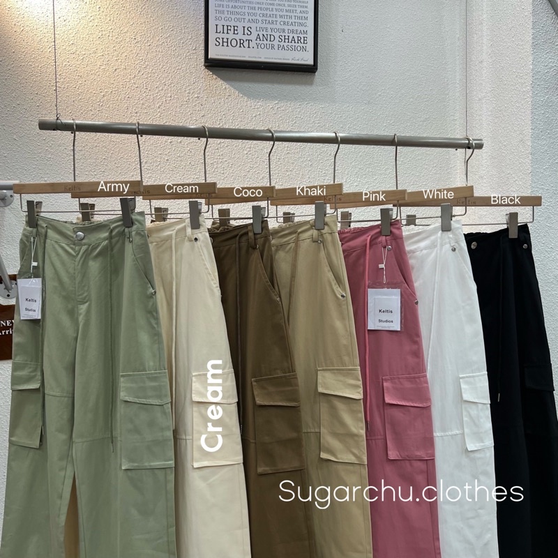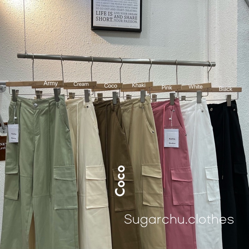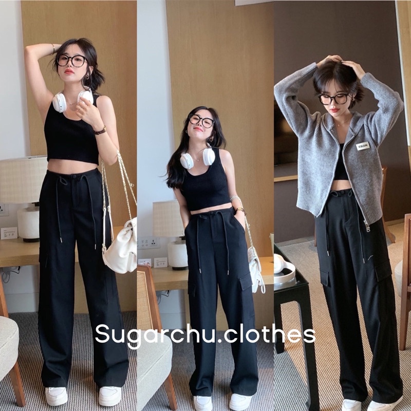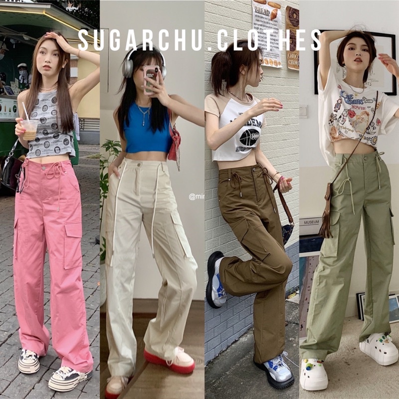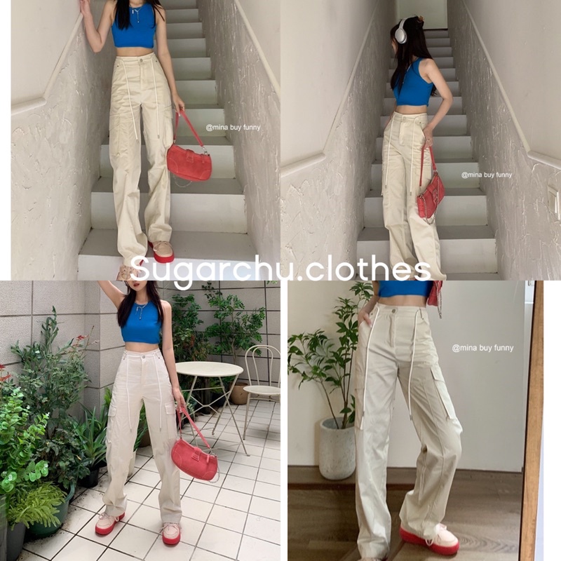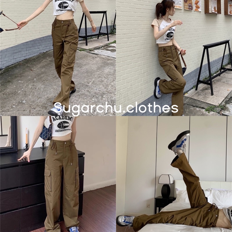 ☀️CARGO กางเกงคาร์โก้☀️กางเกงขายาวทรงคาร์โก้ ทรงกระบอกตรง ดีเทลมีเชือกผูกเอว เนื้อผ้าหนา☁️พร้อมส่ง - รหัส1089