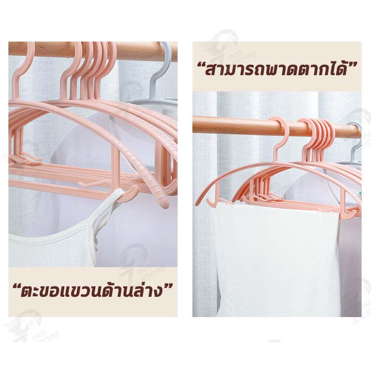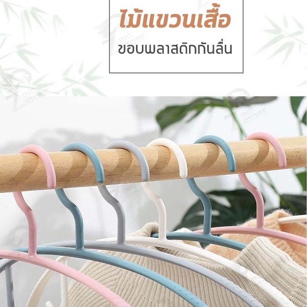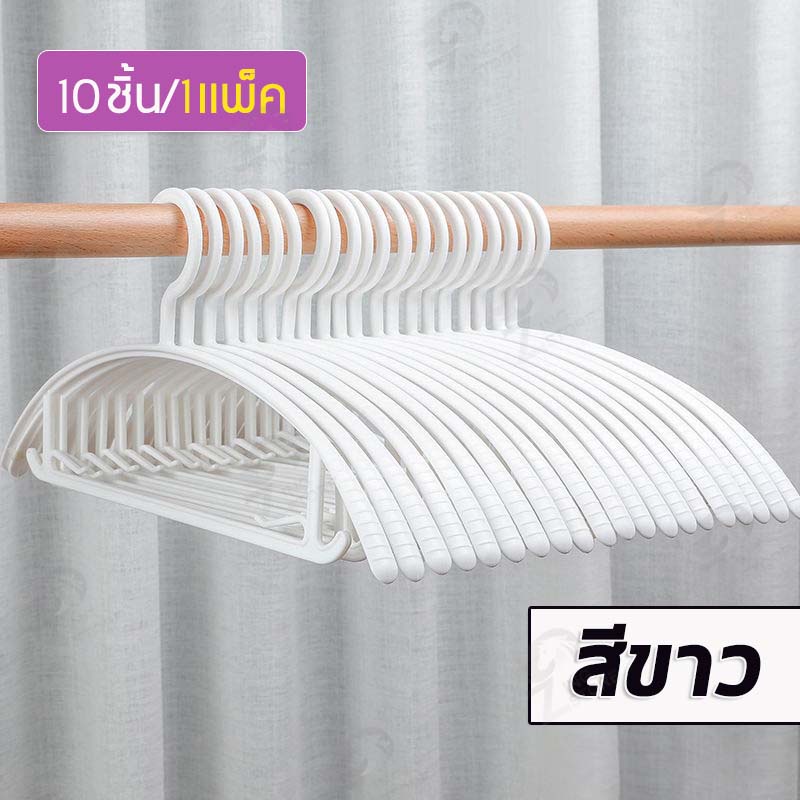 [ร่องกันผ้าลื่น] ไม้แขวนเสื้อพลาสติก ไม้เเขวนขอบกันลื่น รุ่นกันลื่น สีพาทเทล 10 ชิ้น/1เเพ็ค ที่แขวนเสื้อยืดหยุ่นได้ CF