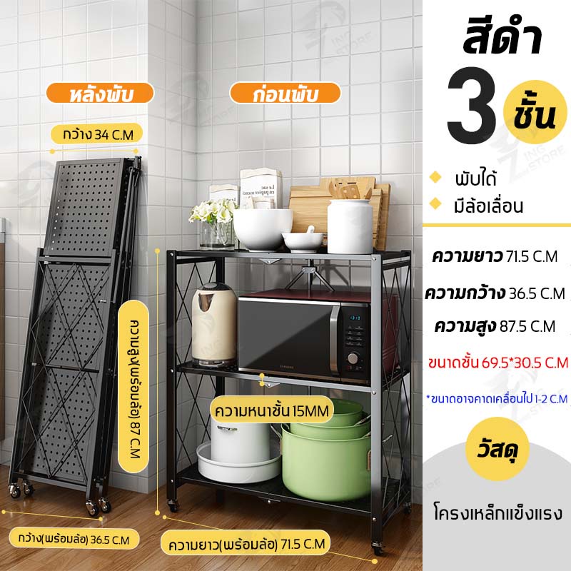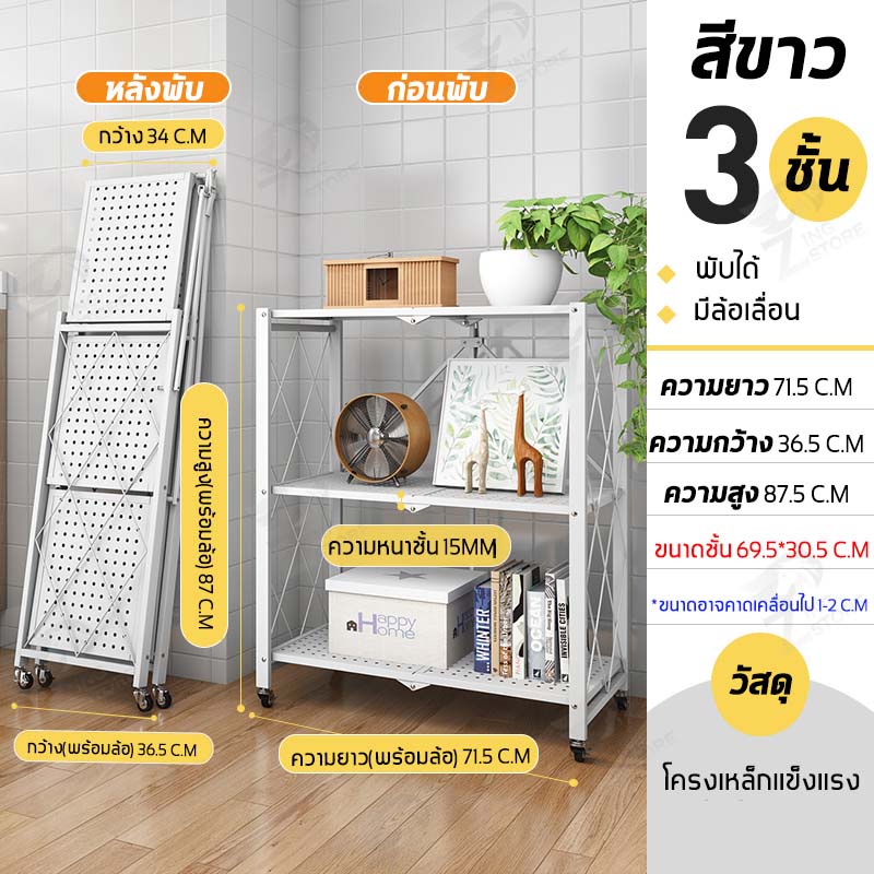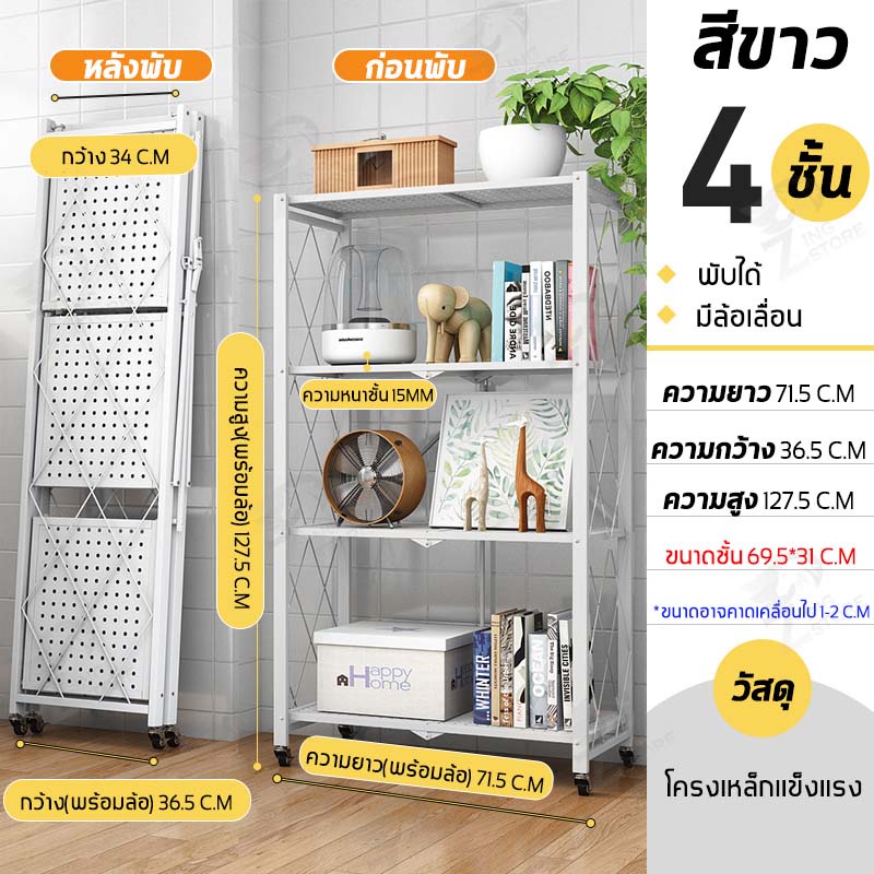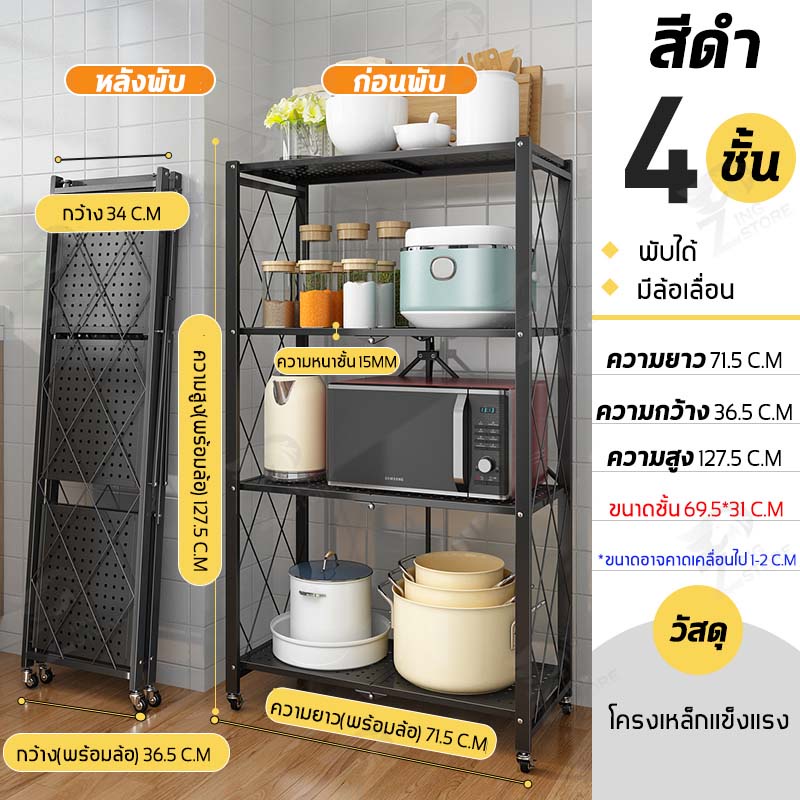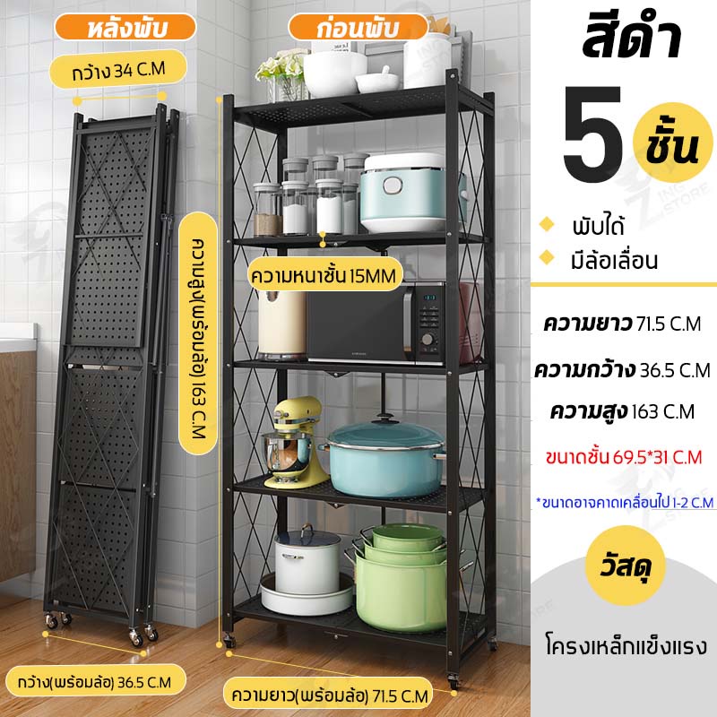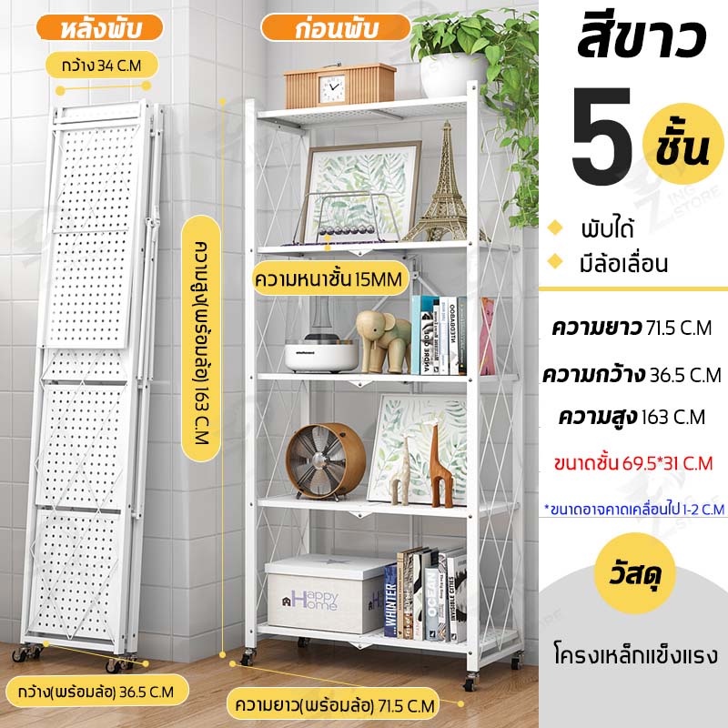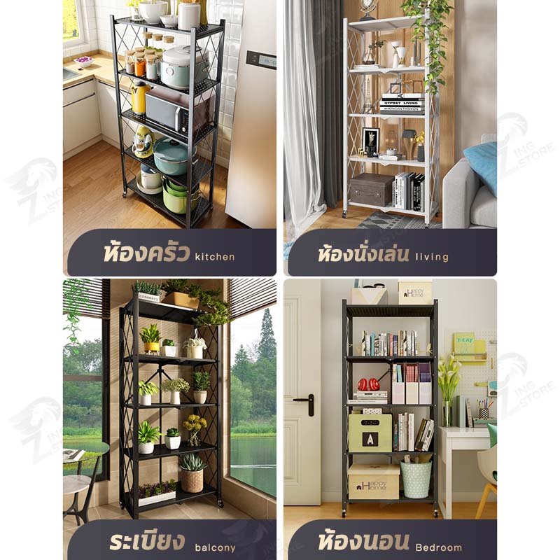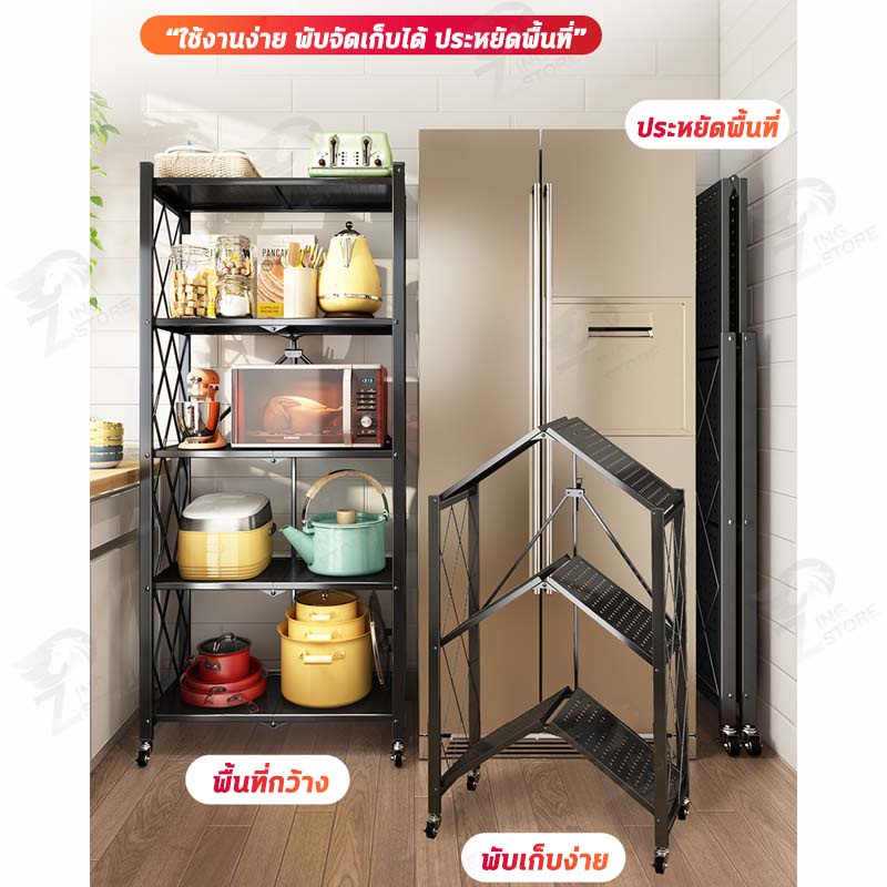 ชั้นวางของพับเก็บได้ โครงเหล็ก มีล้อเคลื่อนย้ายได้ง่าย รับน้ำหนักได้เยอะ ตัวล้อคแน่นหนา กันสนิม มี ให้เลือก 2-5 ชั้น ZD