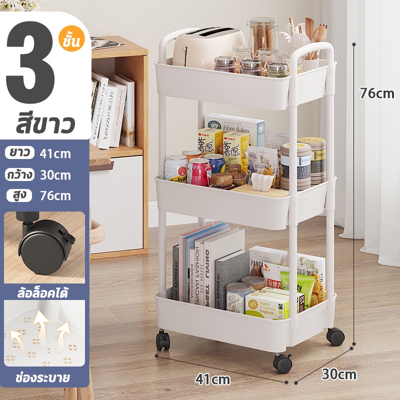 [พร้อมล้อ] ชั้นวางของพลาสติกมาพร้อมกับล้อ+ที่จับ รถเข็นเก็บของเคลื่อนย้ายสะดวก พร้อมส่ง!! BW