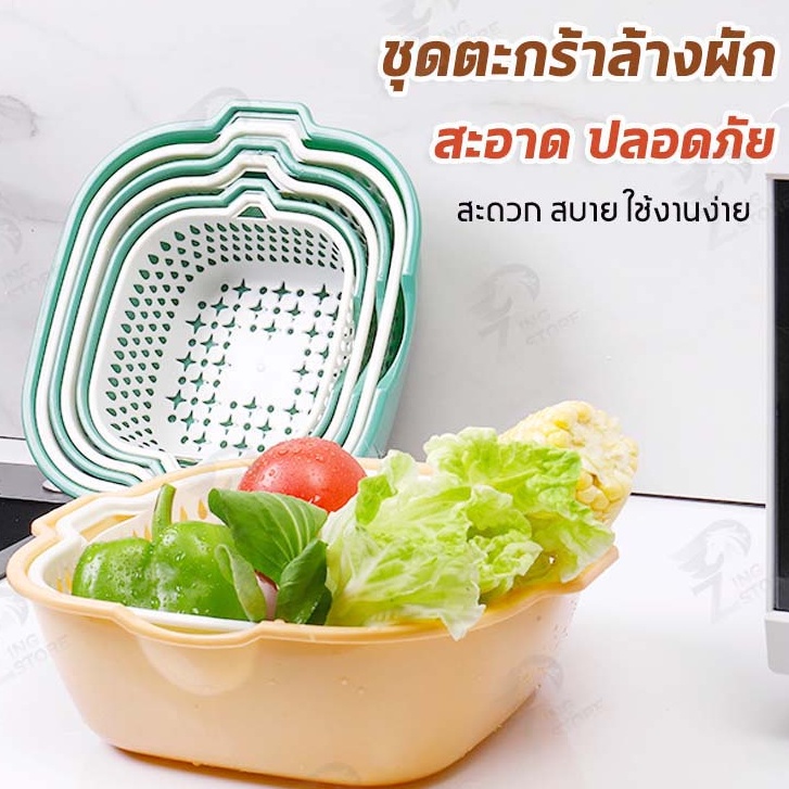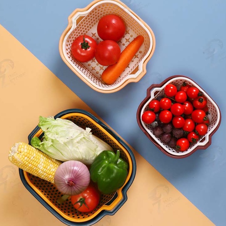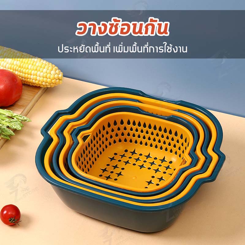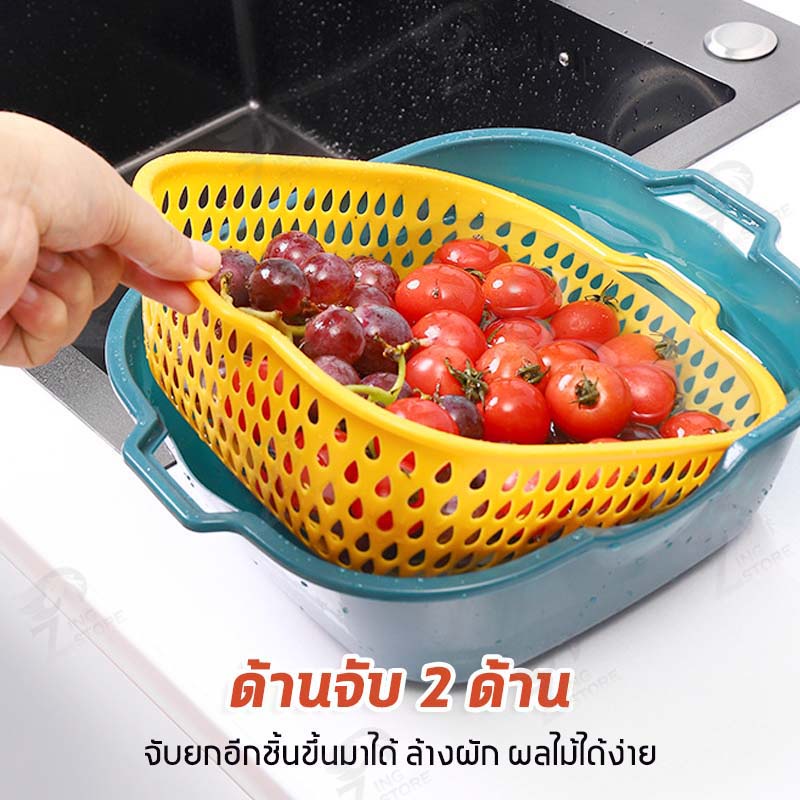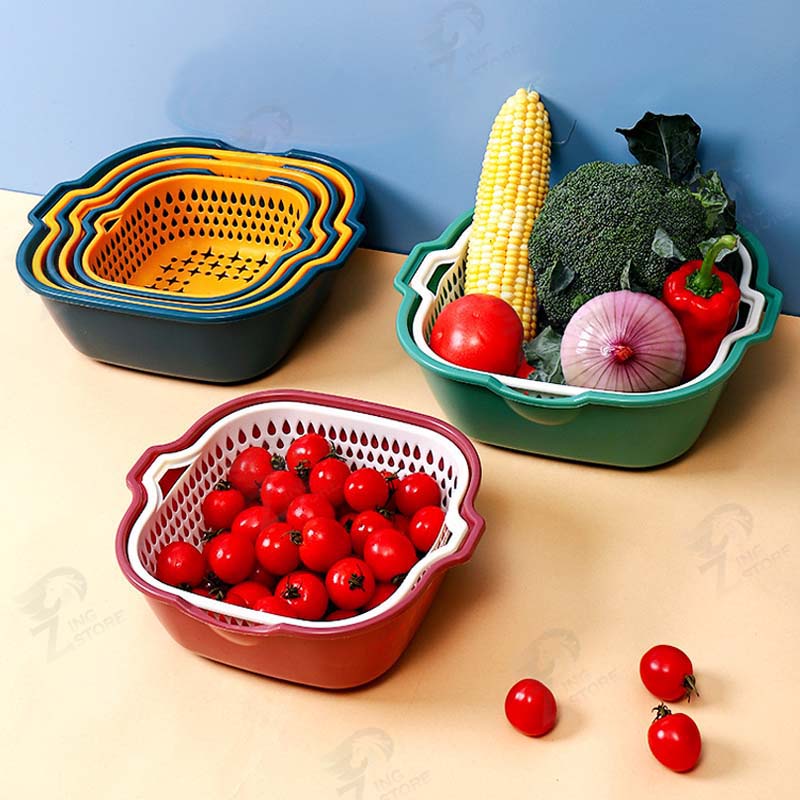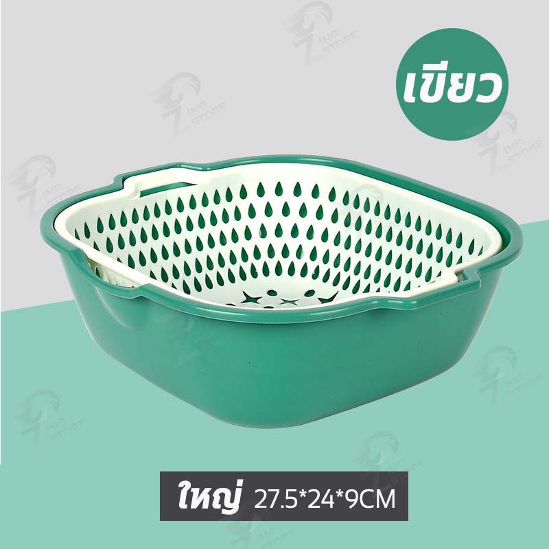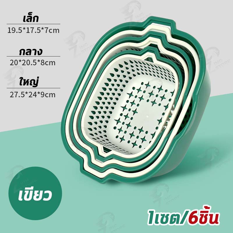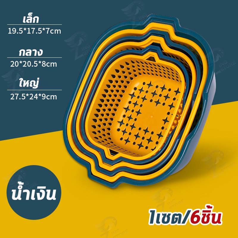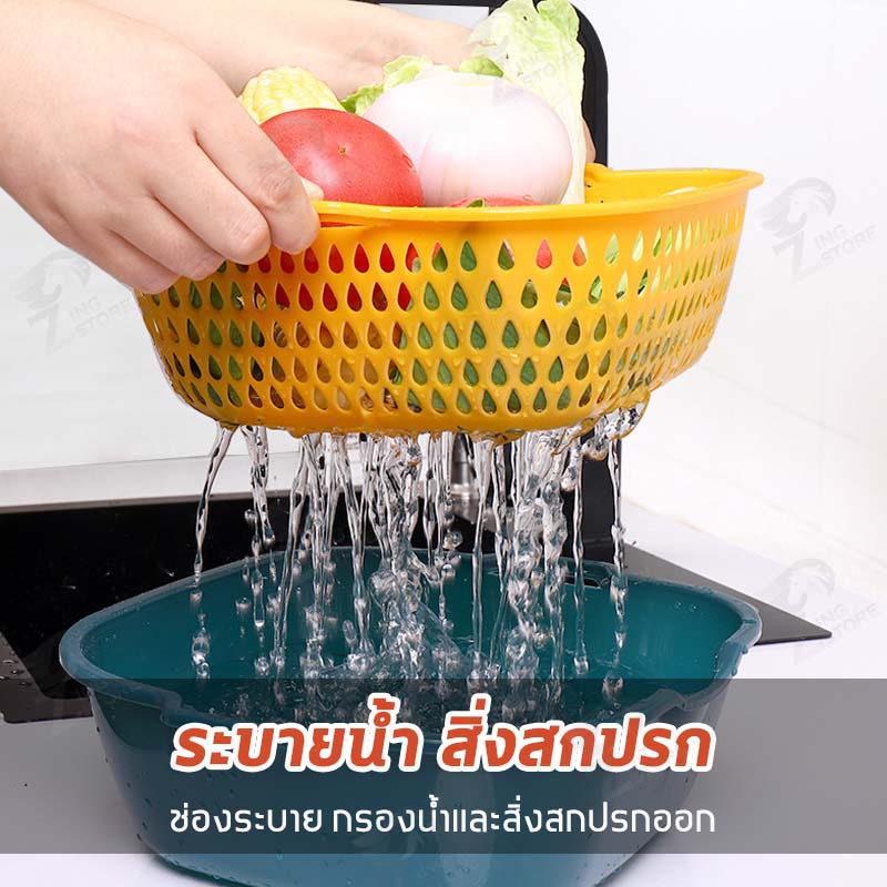[2in1] ชุดตระกร้ากรอง ชุดตระกร้าระบายน้ำ ตะกร้าล้างผัก 2 ชั้น กะละมังล้างผัก ล้างผักผลไม้ ชุดเซต 6 ชิ้น ++พร้อมส่ง++ OB