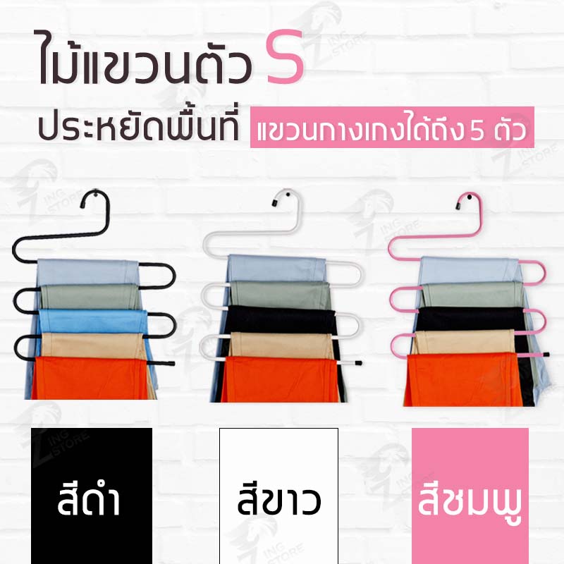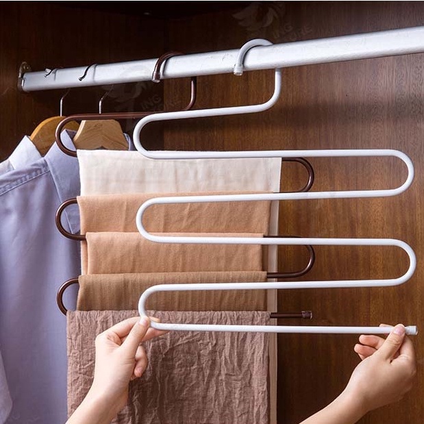 [เเขวนได้5ตัว] ไม้แขวนกางเกง ไม้แขวนเหล็กรูปตัวS แขวนกางเกงกระโปรงไซซ์ใหญ่ ประหยัดพื้นที่ เเข็งเเรง พร้อมส่ง SS
