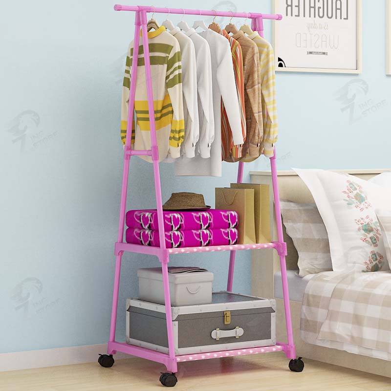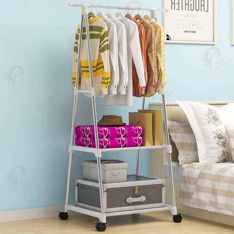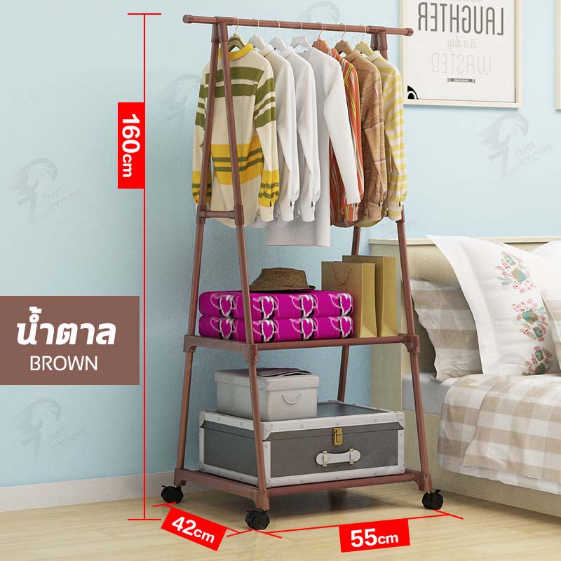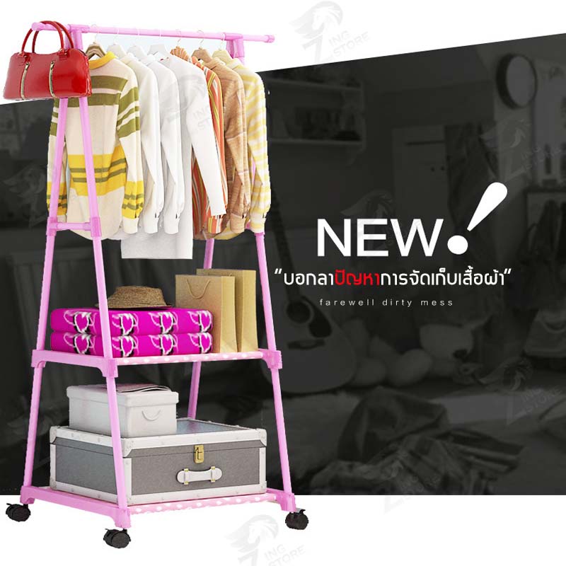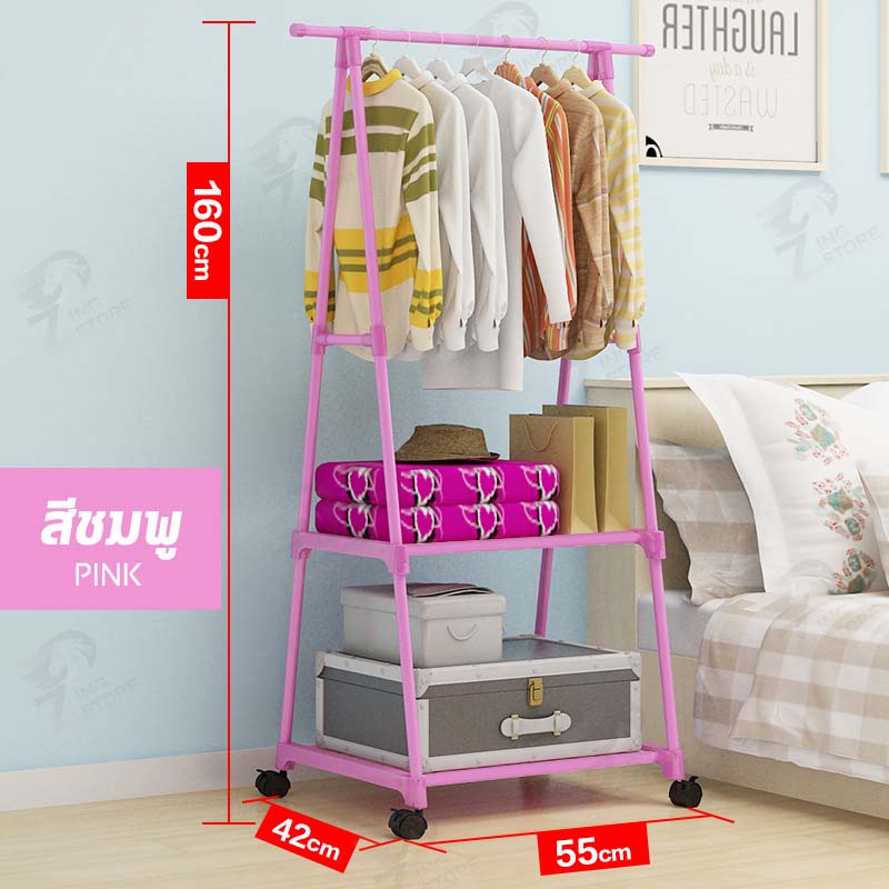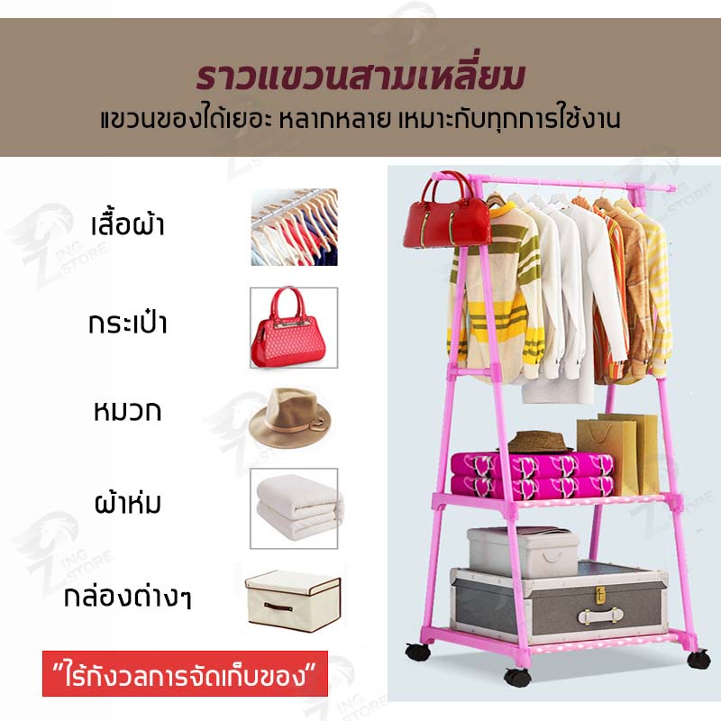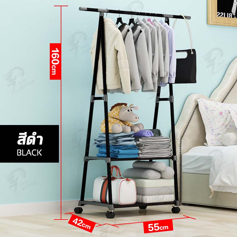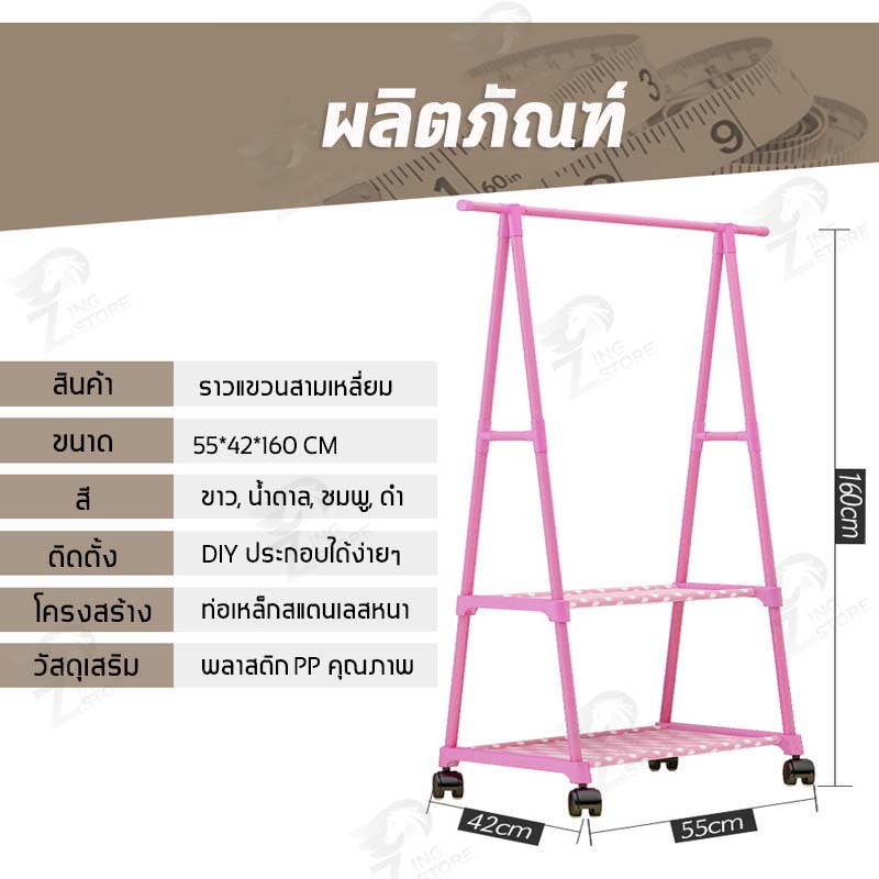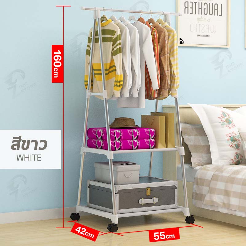 ราวแขวนผ้าทรงสามเหลี่ยม ราวแขวนเสื้อ ชั้นวางของทรงสามเหลี่ยม เคลื่อนย้ายสะดวก ราวแขวนผ้า+ชั้นวางของ AC