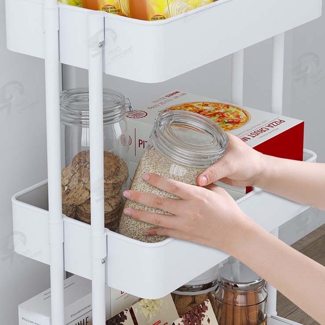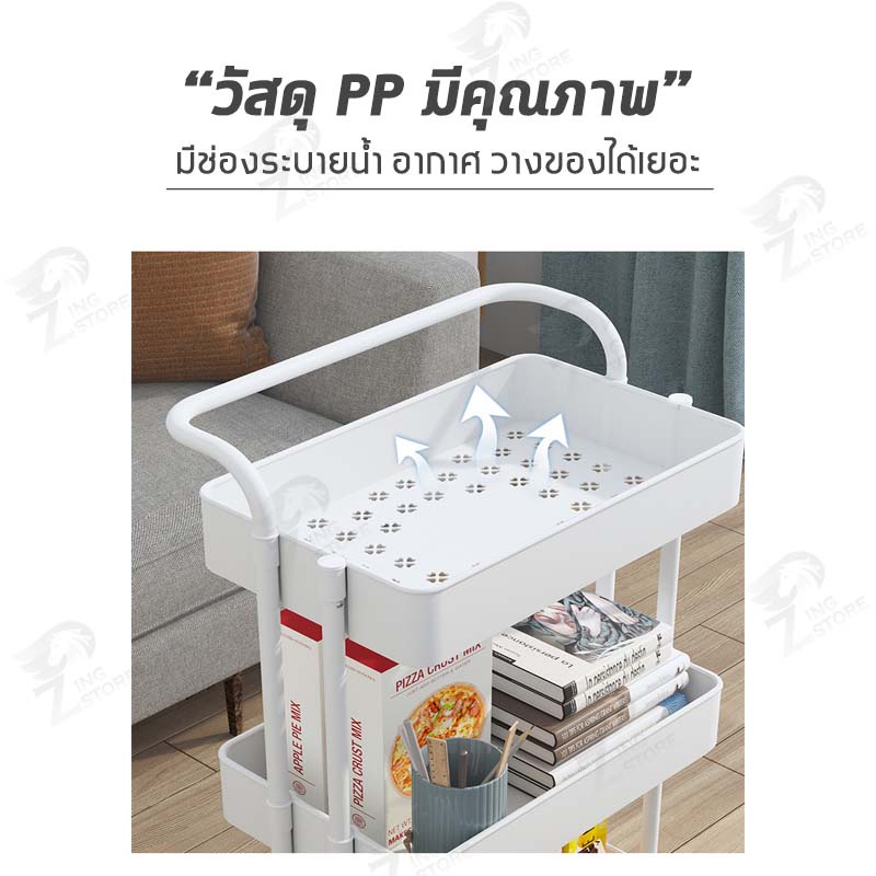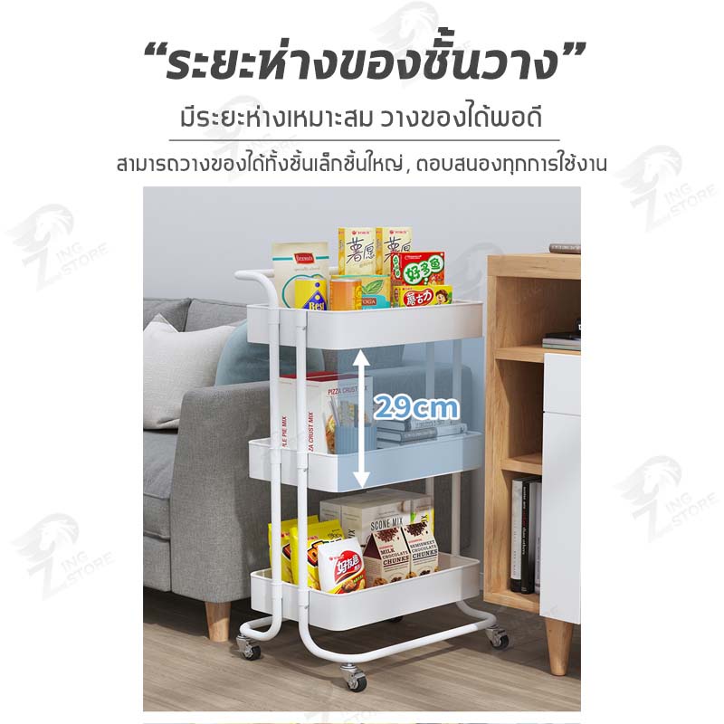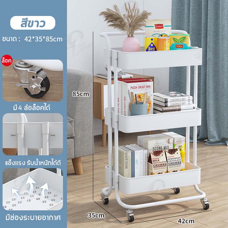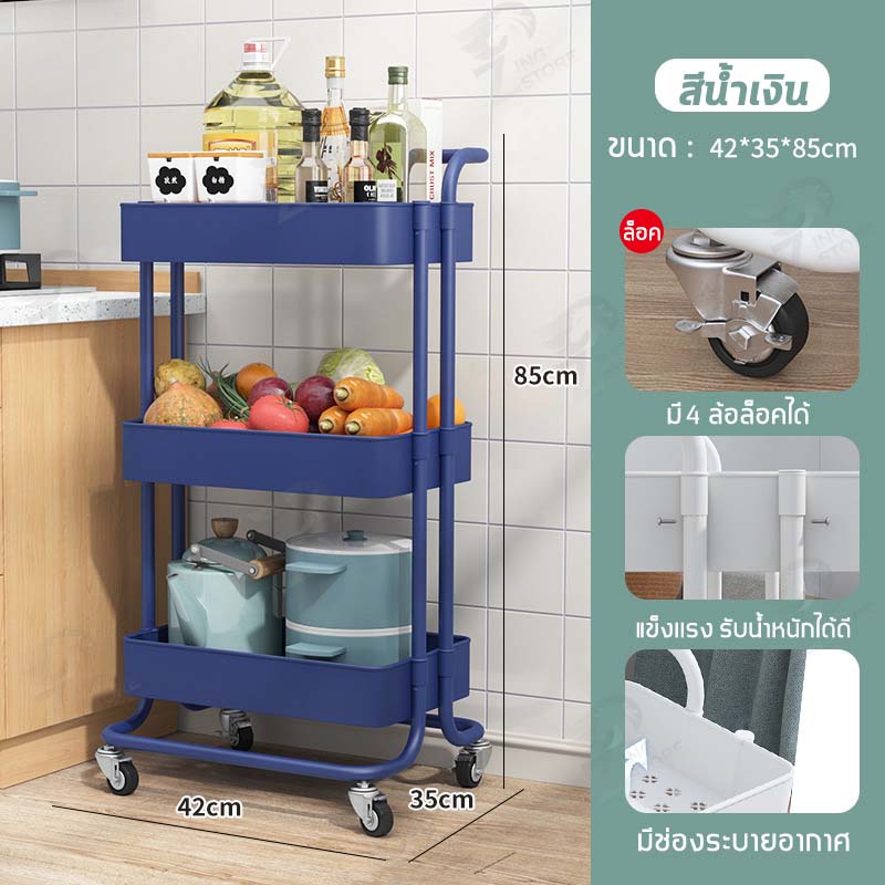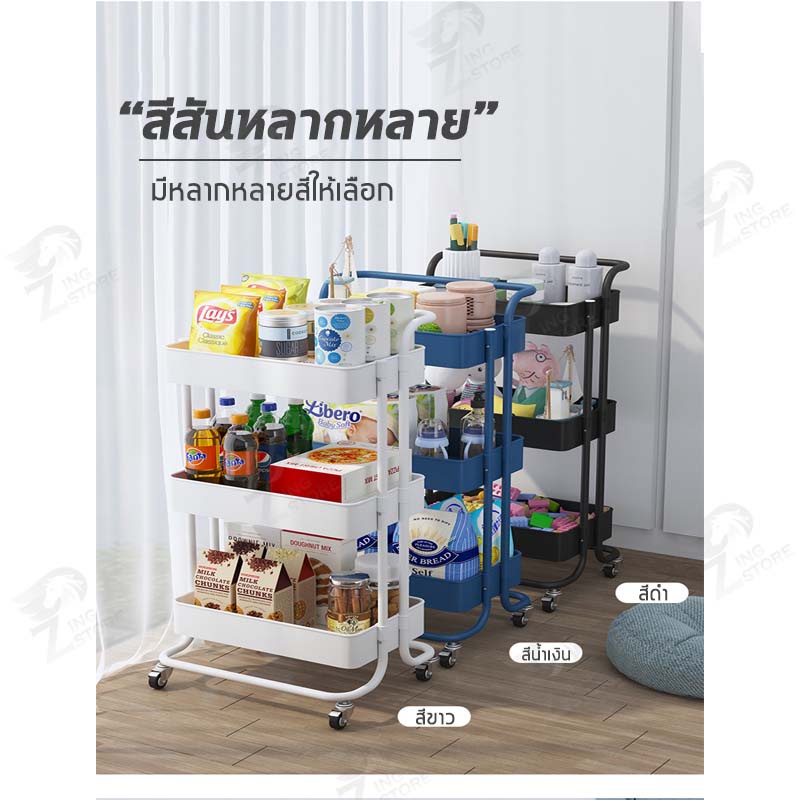 [รุ่นฮิต] ชั้นวางของ3ชั้น พร้อมล้อเลื่อน+ที่จับ รถเข็นอาหาร Rolling Cart Shelf ชั้นวางโครงเหล็ก กันสนิม ++ พร้อมส่ง++ MK