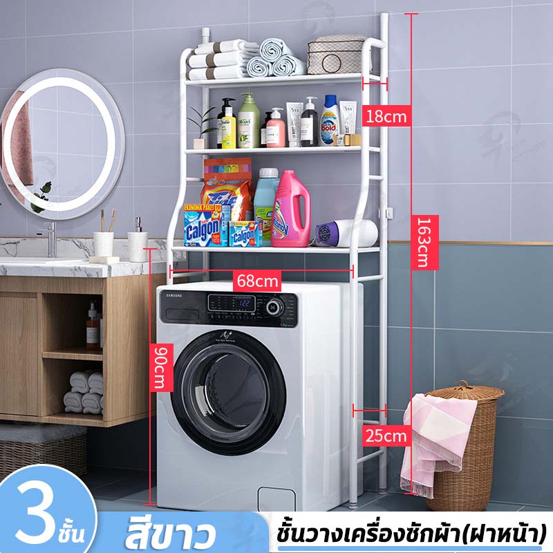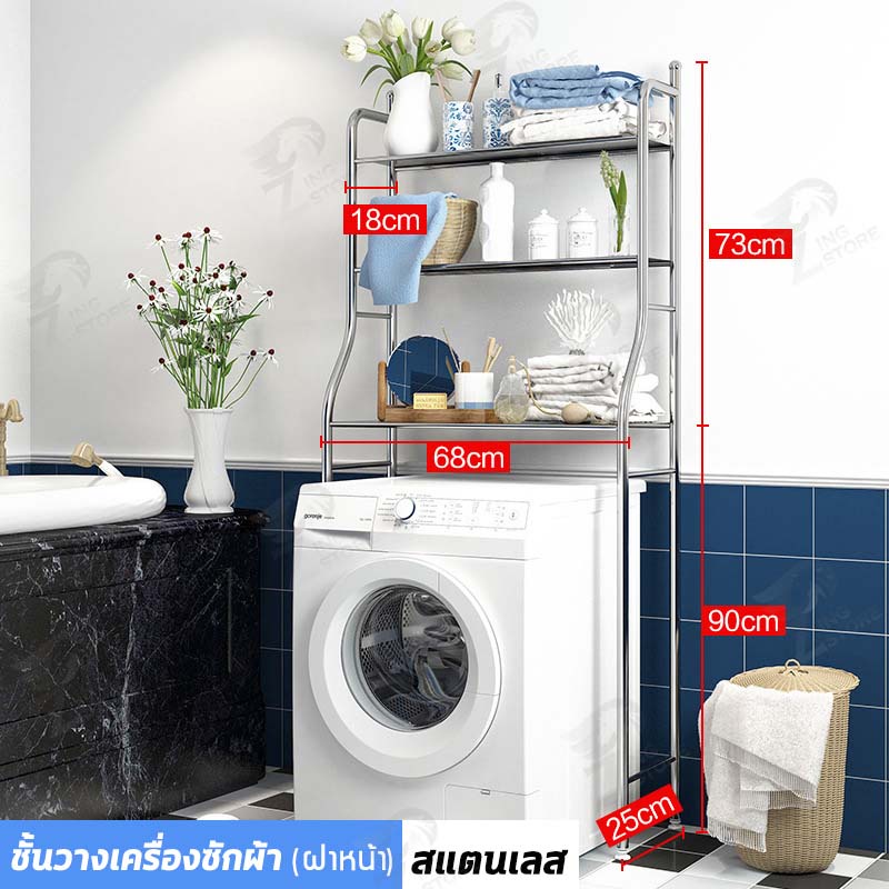 [3แบบ3สไตล์] ชั้นวางของในห้องน้ำ ชั้นคร่อมเครื่ัองซักผ้า ฝาหน้า ฝาบน โครงเหล็ก สเเตนเลส 2/3ชั้น พร้อมส่ง!! MC