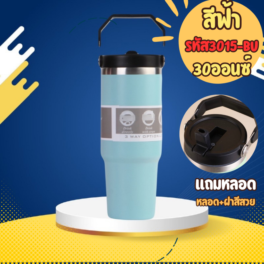 แก้วเก็บความเย็น สเตนเลสแท้ ขนาด 30 ออนซ์900ml แถมหลอดมาในตัว พร้อมส่งจากไทย สินค้าจริง