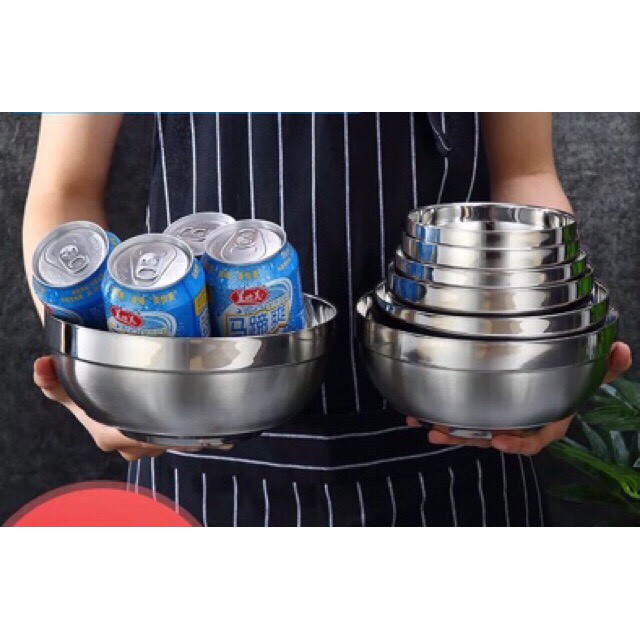 ชามสเตนเลสสองชั้นสไตล์เกาหลี11.5cm-20CMและมีชุดชามสแตนเลสทรงกลมพร้อมฝาเซ็ต 5 ชิ้น