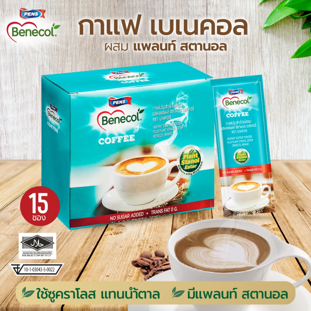 Benecol เบเนคอล กาแฟผสมแพลนท์สตานอล 15 ซอง 3 กล่อง