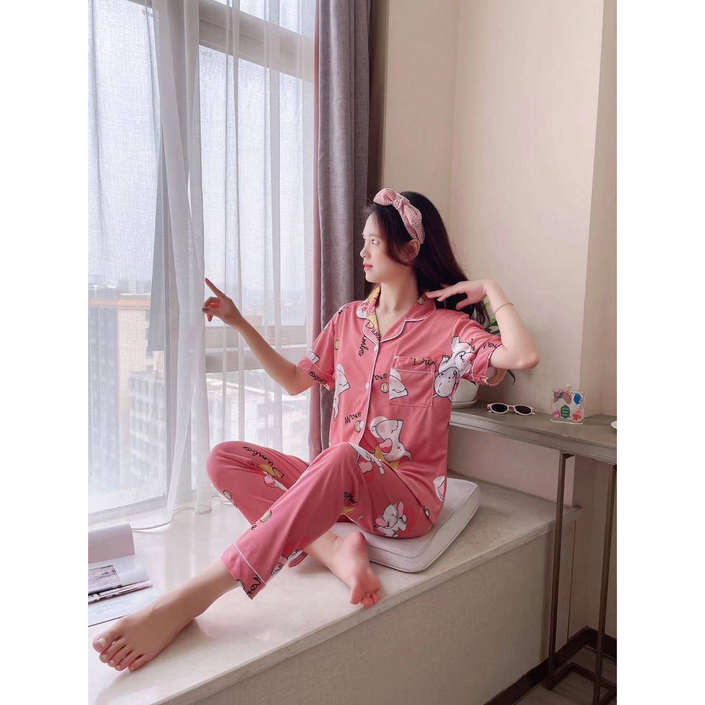 โล๊ะโกดังผ้าคอทตอนเกรดเอ ผ้าคอทตอนอย่างหนา แขนสั้นขายาว ลายการ์ตูนน่ารักมากๆ