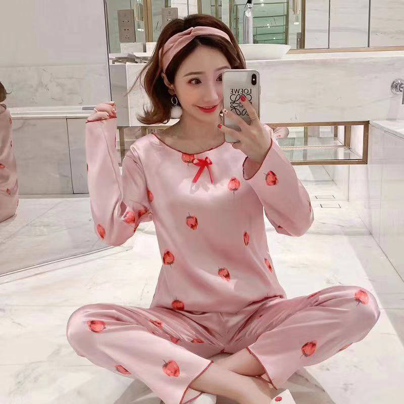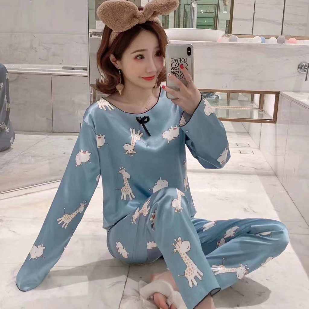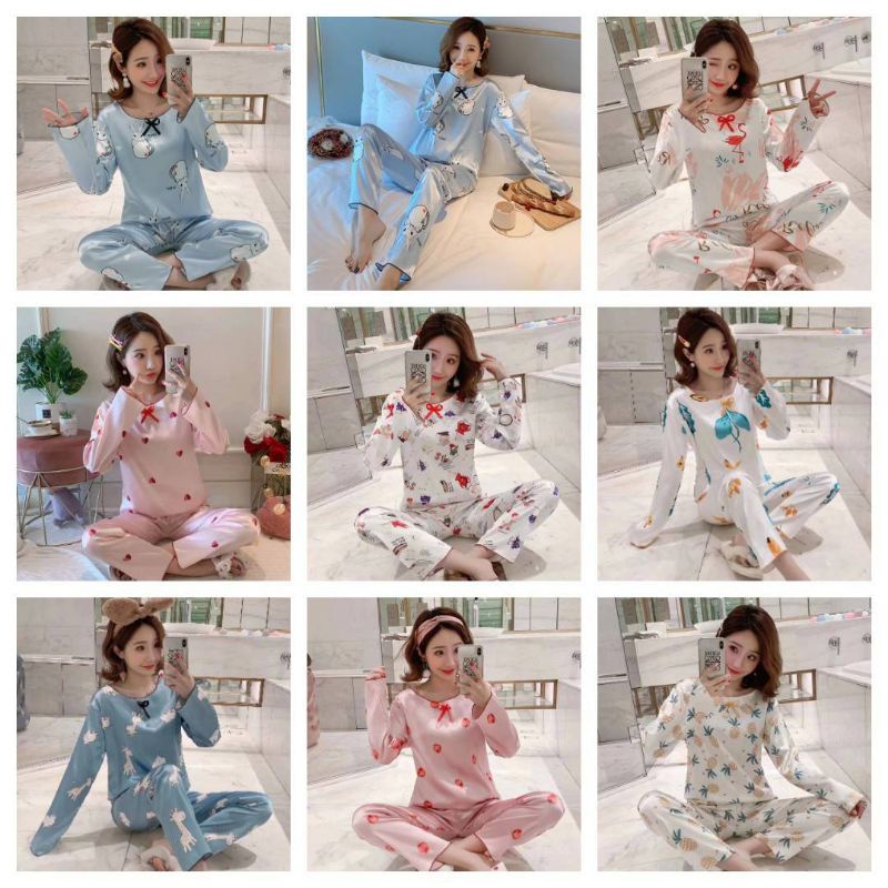 โละโกดังผ้าไหมอิตาลีเกรดพรีเมี่ยม ชุดนอนแขนยาว ขายาว ผ้าสบายนิ่มมาก ลายสวย แต่งดีเทลโบว์คิ้วท์