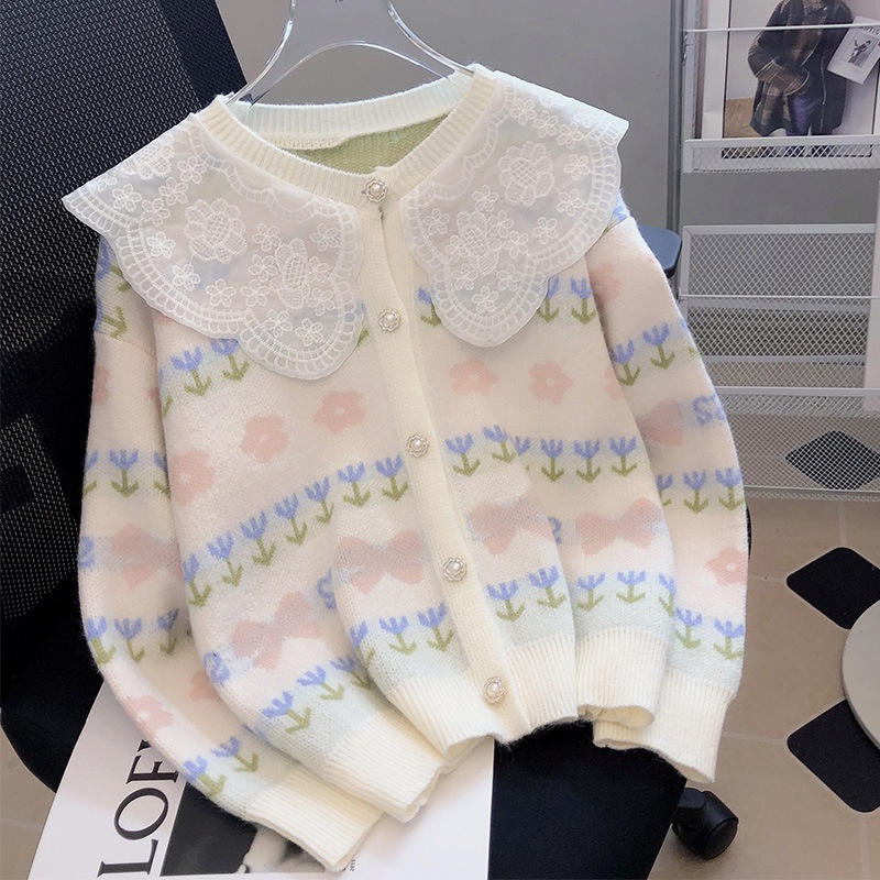 NZN ฤดูใบไม้ร่วงใหม่ลูกไม้จัมเปอร์เวอร์ชั่นเกาหลีของตุ๊กตาคอปกแขนยาวถักเสื้อสเวตเตอร์ถัก
