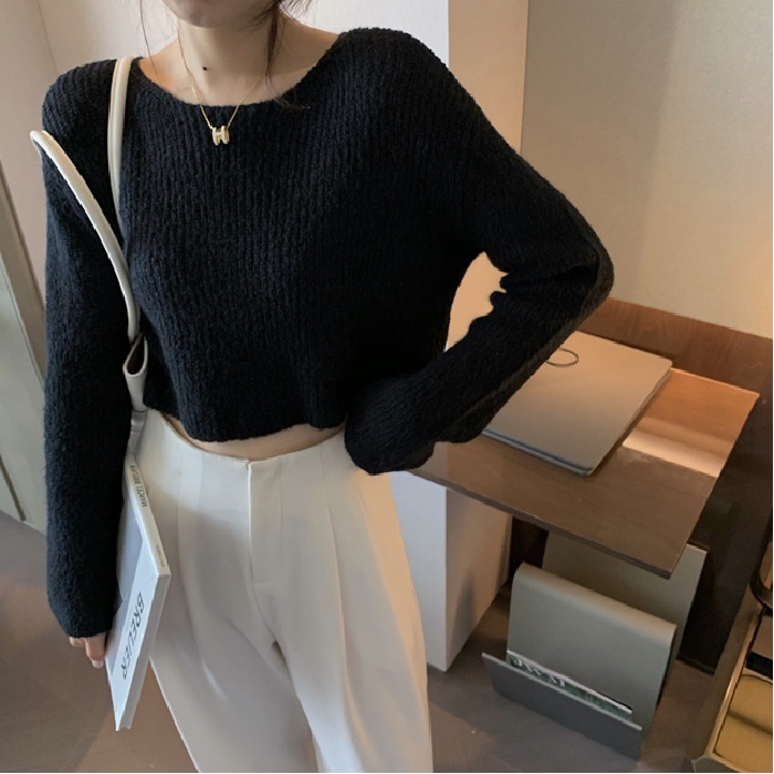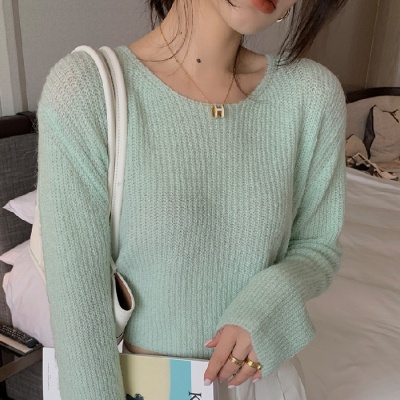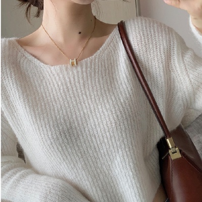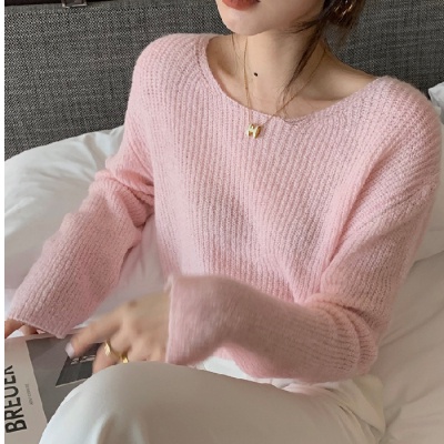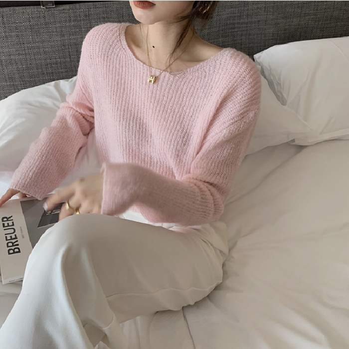 NZN เสื้อไหมพรมคอวีเสื้อถักนิตติ้งแขนยาวบางผู้หญิงเกาหลี