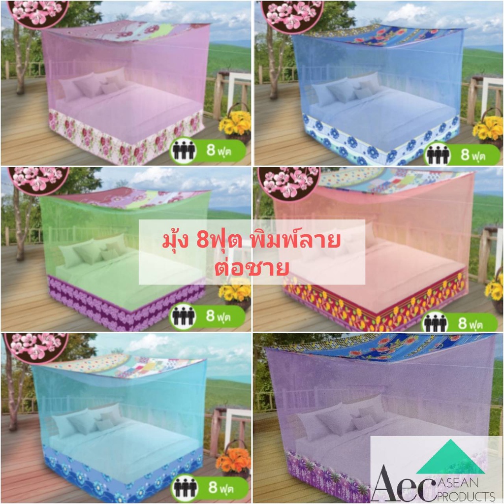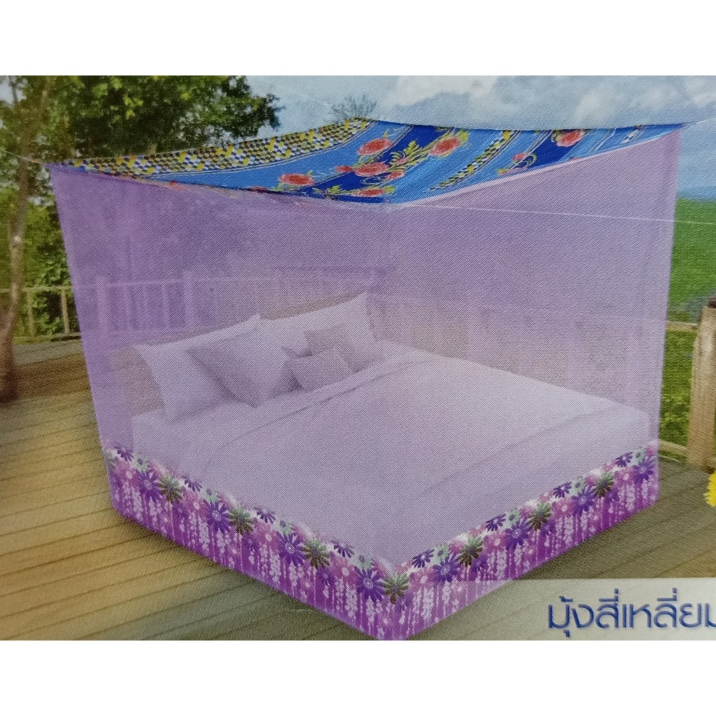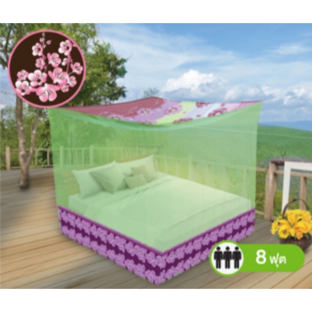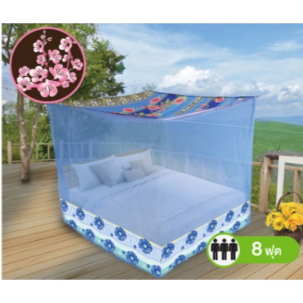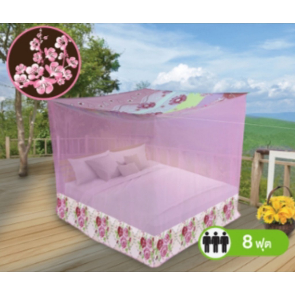 มุ้งสี่เหลี่ยมต่อชายพิมพ์ลายดอกไม้ 8ฟุตนอน 3 คน มุ้ง 8 ฟุตซากุระ ยี่ห้อ Netto คุณภาพดีทนทาน เก็บเงินปลายทาง