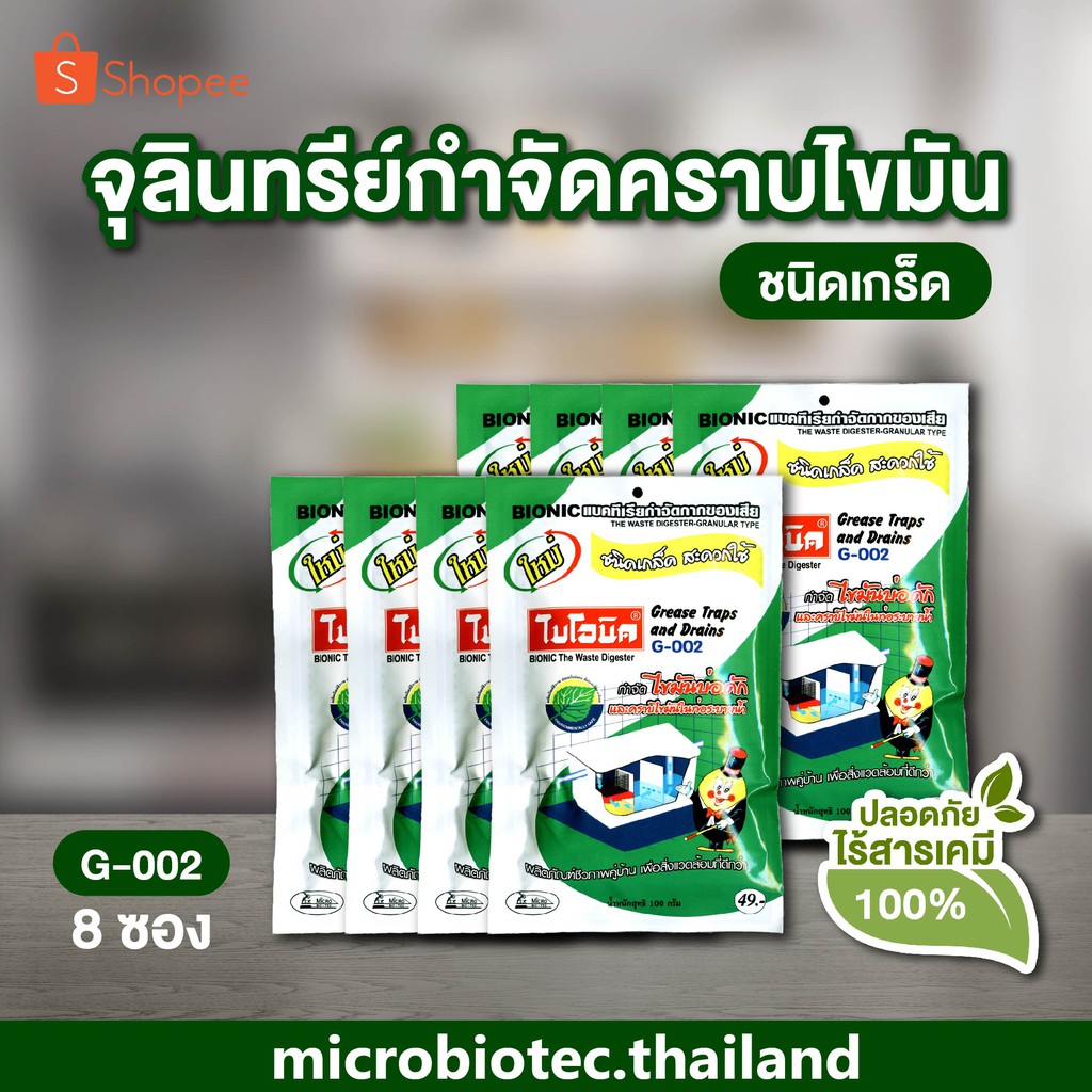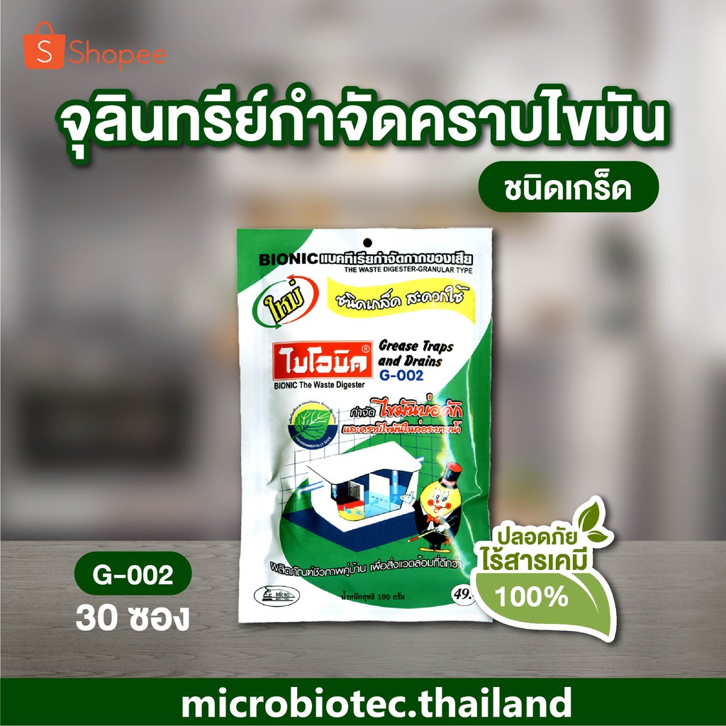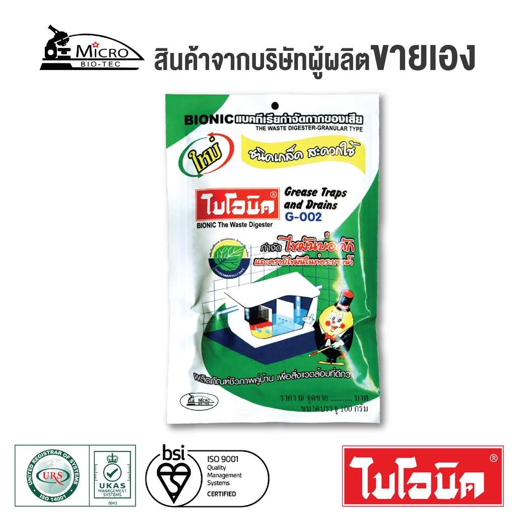 BIONIC G002 100 กรัม ไบโอนิค กำจัดไขมัน ไขมันในบ่อดัก ดับกลิ่นเหม็นไขมัน สลายไขมันในท่อ เศษอาหารอุดตัน
