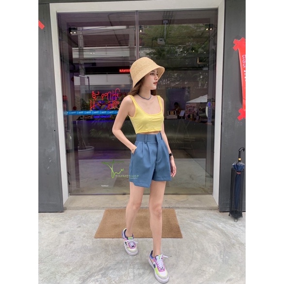 กางเกงขาสั้นเอวสูงผ้าเคนนี่ 🍒ผ้าหนา ทรงสวย รับรอง