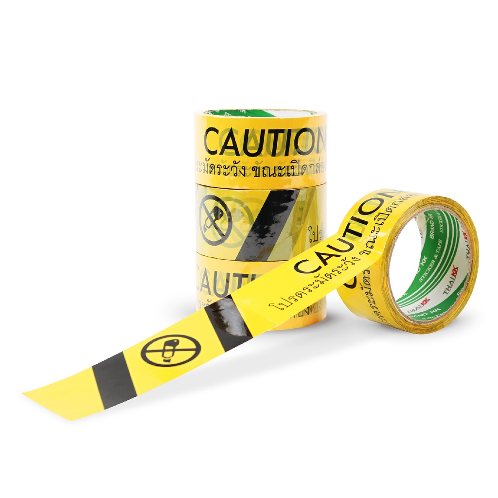 Thai KK® เทปปิดกล่อง พิมพ์ "Caution โปรดระมัดระวังขณะเปิดกล่อง" Caution Tape 2 นิ้ว x 45 หลา (1 ม้วน)