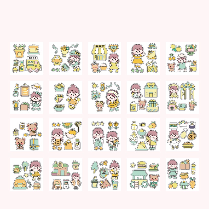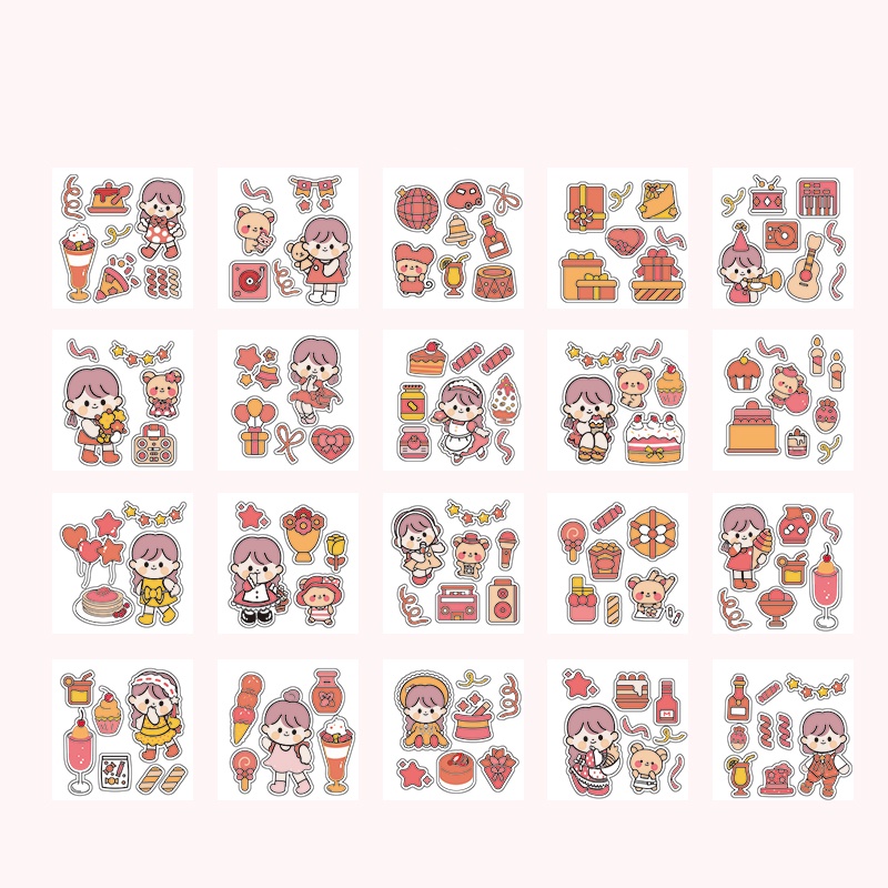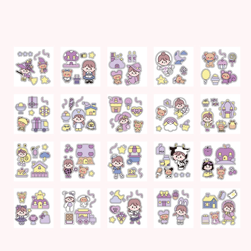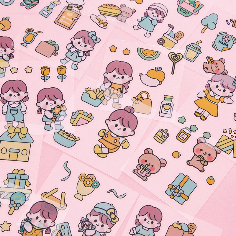 สติกเกอร์ PVC ลายการ์ตูนเด็กผู้หญิงน่ารัก กันน้ํา สําหรับตกแต่งเครื่องเขียน มี 20 แผ่น