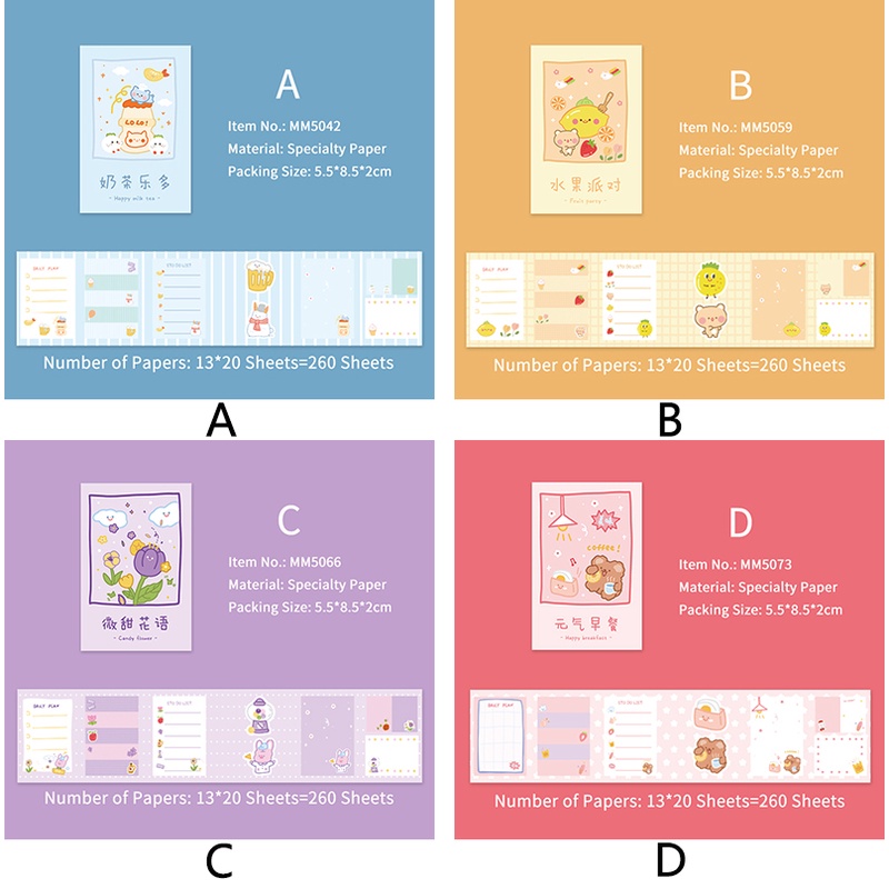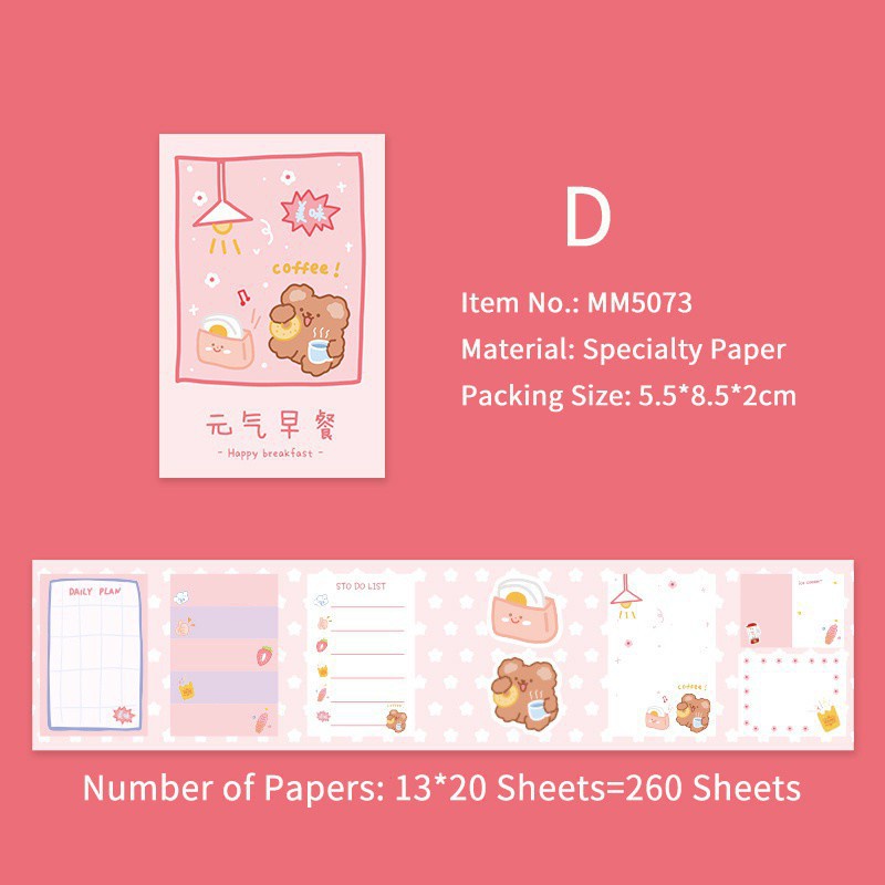 กระดาษโน้ต แบบพับได้ ลายการ์ตูนน่ารัก 260 แผ่น
