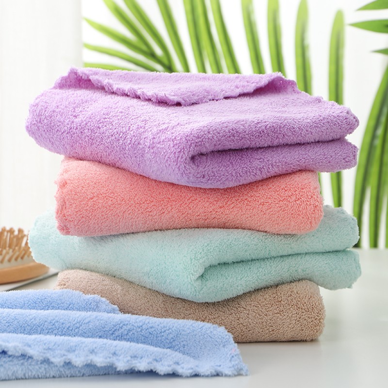 ผ้าเช็ดผม ยกแพ็ค6ผืน คละสี มีขอบ/ขอบหยัก (35×75cm) ห้องน้ำ ผ้าขนหนูสำหรับใบหน้า ใช้ซ้ำได้ การซึมซับ