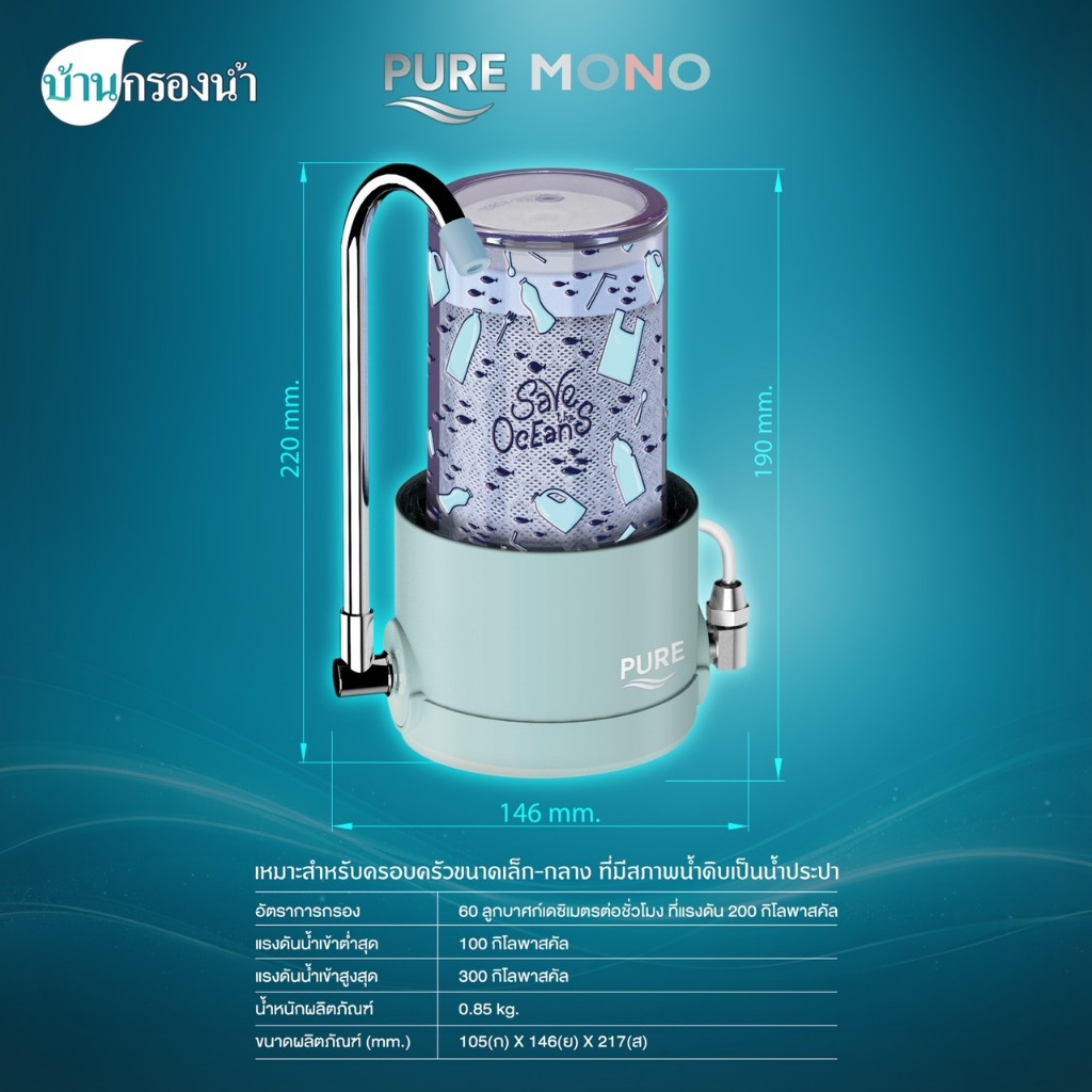 Pure เครื่องกรองน้ำดื่ม 3 ขั้นตอน ระบบ UF รุ่น MONO