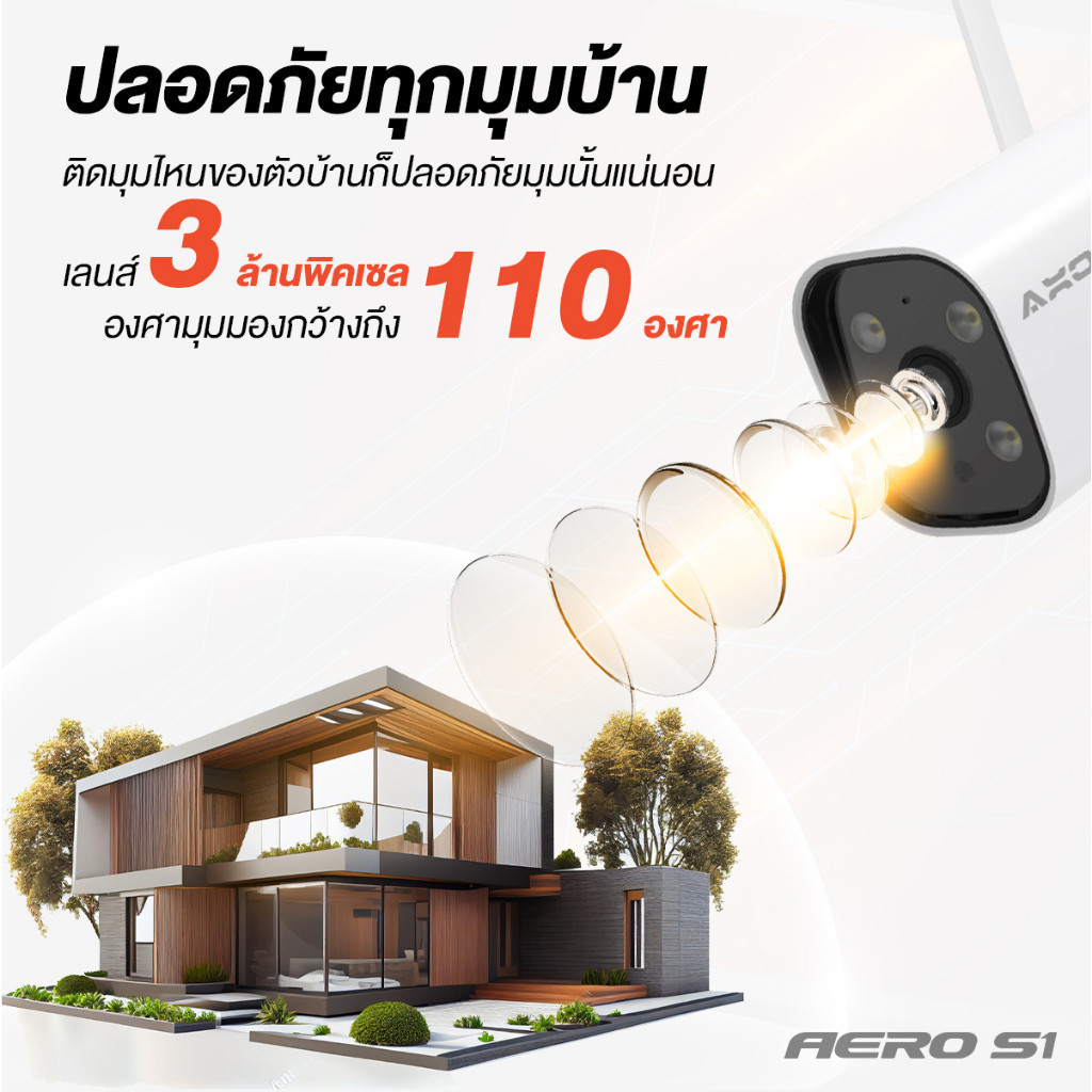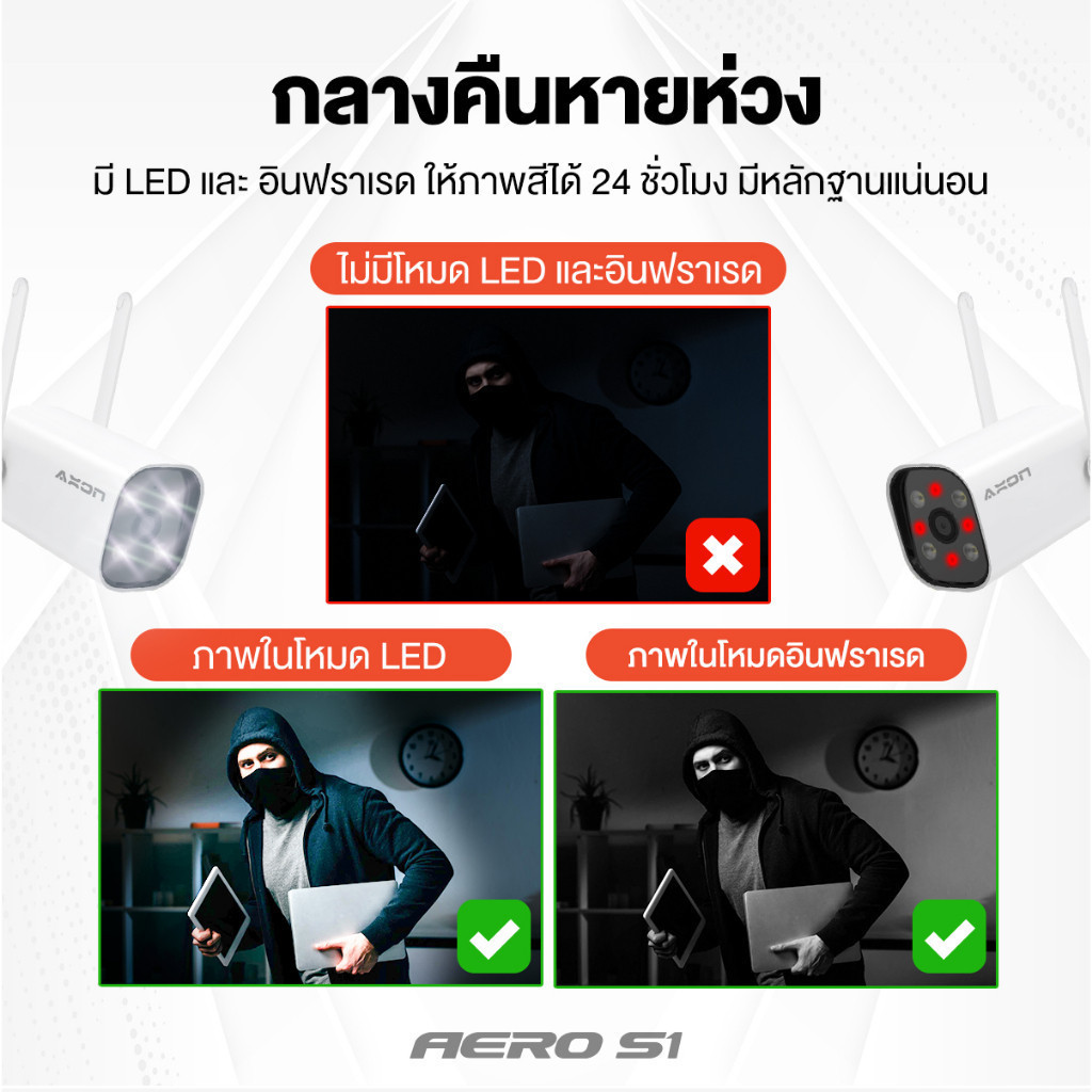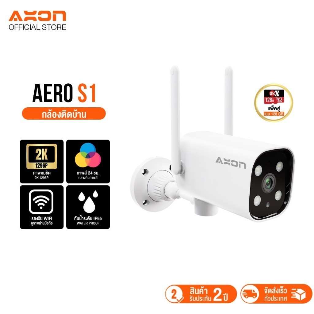 [ชัด 2K] AXON Aero S1 กล้องวงจรปิด ชัด 2K | กลางคืนภาพสี 3MP WIFI กันน้ำ กันฝน 2 เสา ประกัน 2 ปี