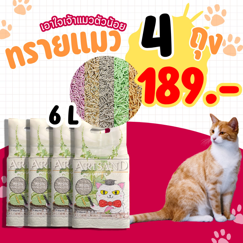 HM-ทรายแมวทรายเต้าหู้ออแกนิค (4 ถุง) เกรดพรีเมี่ยม ไร้ฝุ่น จับกลิ่นดีมาก อ่อนโยนต่อแมว