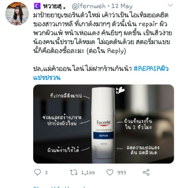 พร้อมส่ง Eucerin Ultrasensitive repair Cream 50 ml Exp 06/2026
