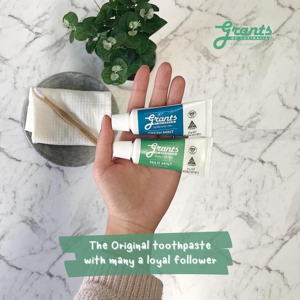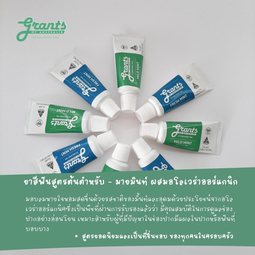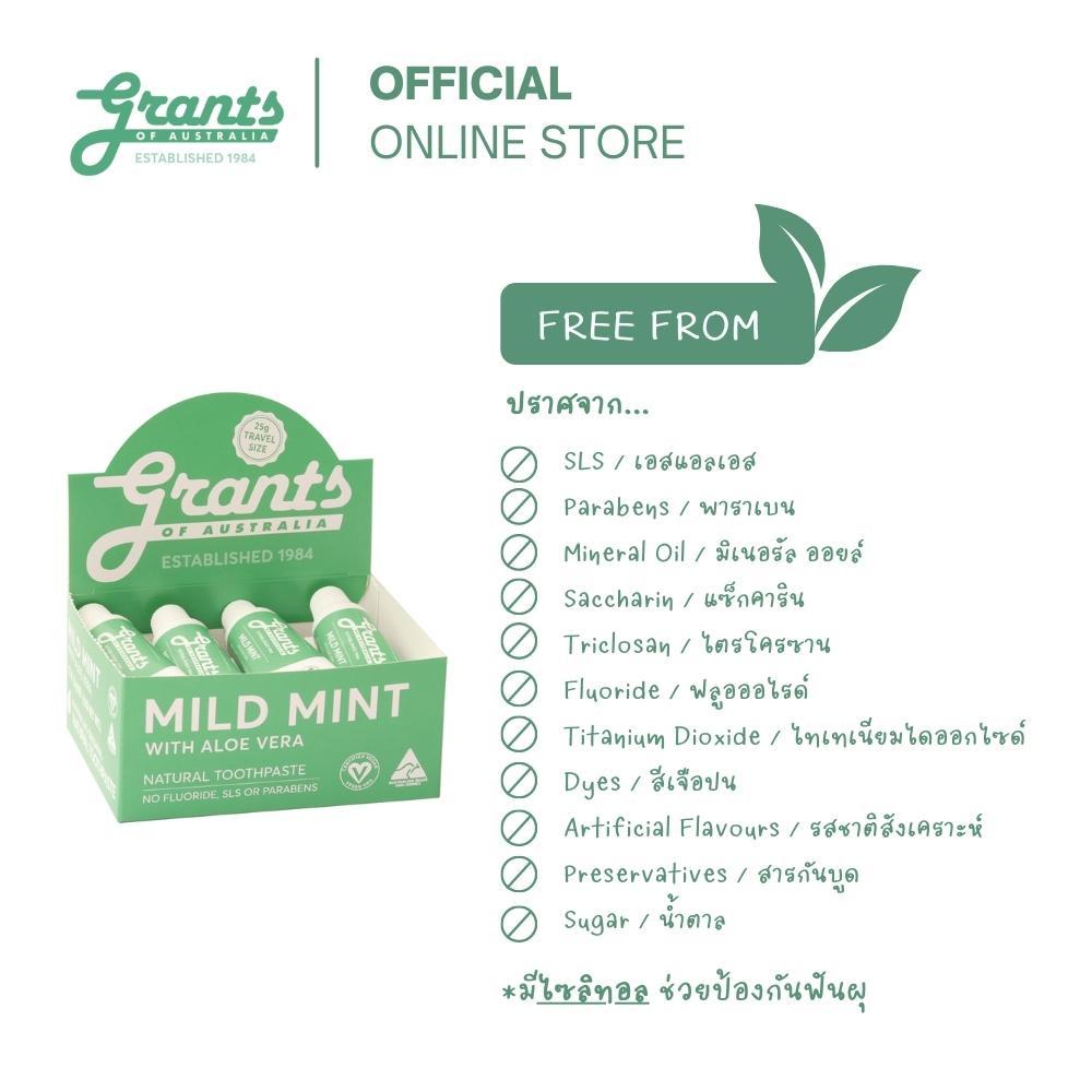 GRANTS OF AUSTRALIA Mild Mint with Aloevera Toothpaste ยาสีฟัน มาย มิ้นท์ อโลเวร่า 25g (Travel Size)