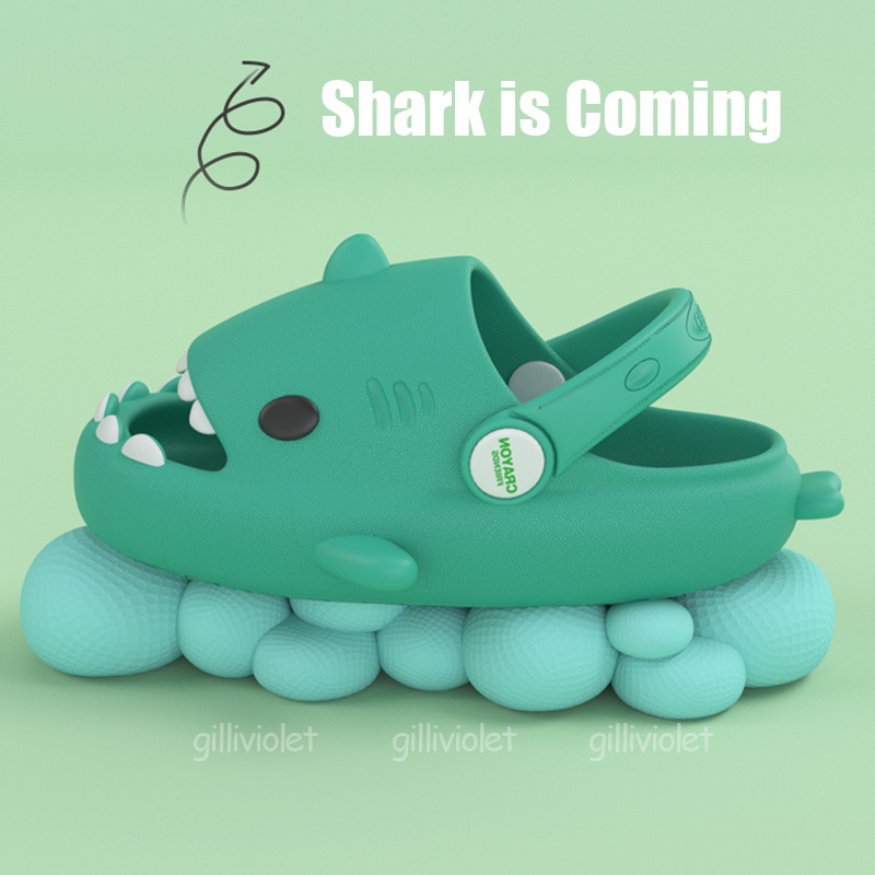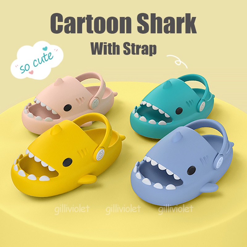 AYUER ใหม่ รองเท้าแตะการ์ตูนฉลาม 3D กันลื่น สําหรับเด็กชายและเด็กหญิง (ที่มีสายคล้อง)